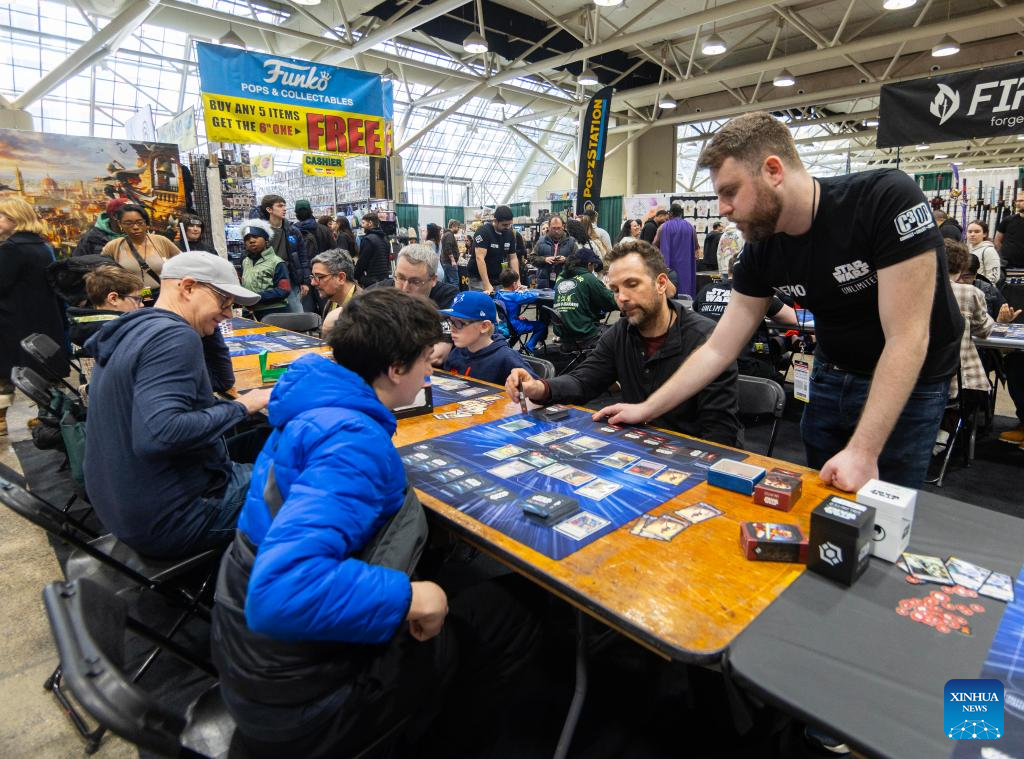 People play card games at the 2025 Toronto Comicon in Toronto, Canada, on March 14, 2025. As a spectacular sci-fi, anime and gaming event in Canada, the Toronto Comicon kicked off here on Friday and will last until Sunday. (Photo by Zou Zheng/Xinhua)