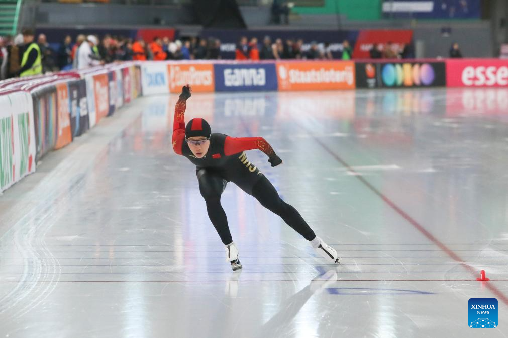 Yin Qi of China competes during the women's 1500m at the ISU World Speed Skating Single Distances Championships in Hamar, Norway, March 16, 2025. (Xinhua/Zhang Yuliang)