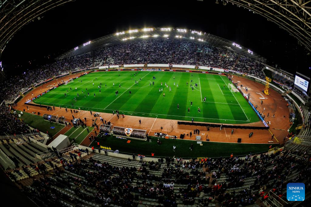 This photo taken on March 20, 2025 shows a general view of the UEFA Nations League quarterfinal 1st leg football match between Croatia and France in Split, Croatia. (Photo by Zvonimir Barisin/PIXSELL via Xinhua)