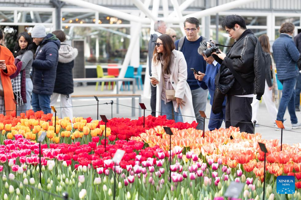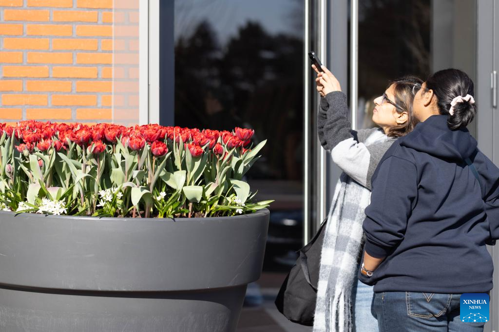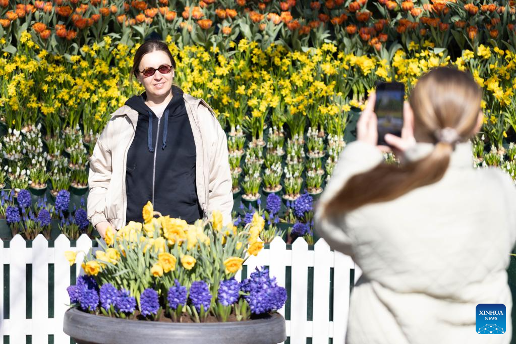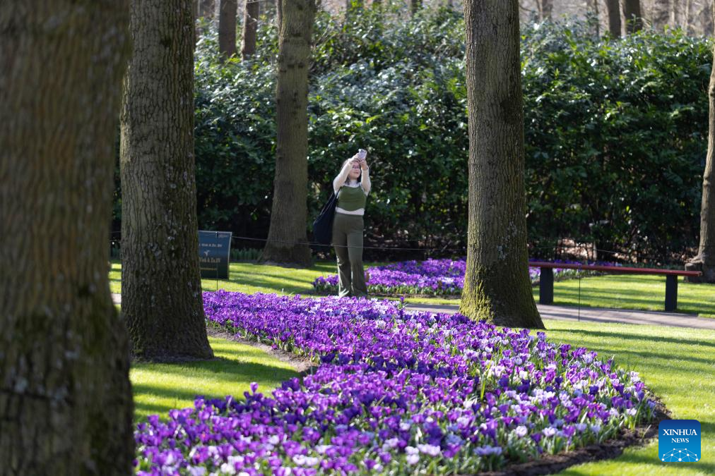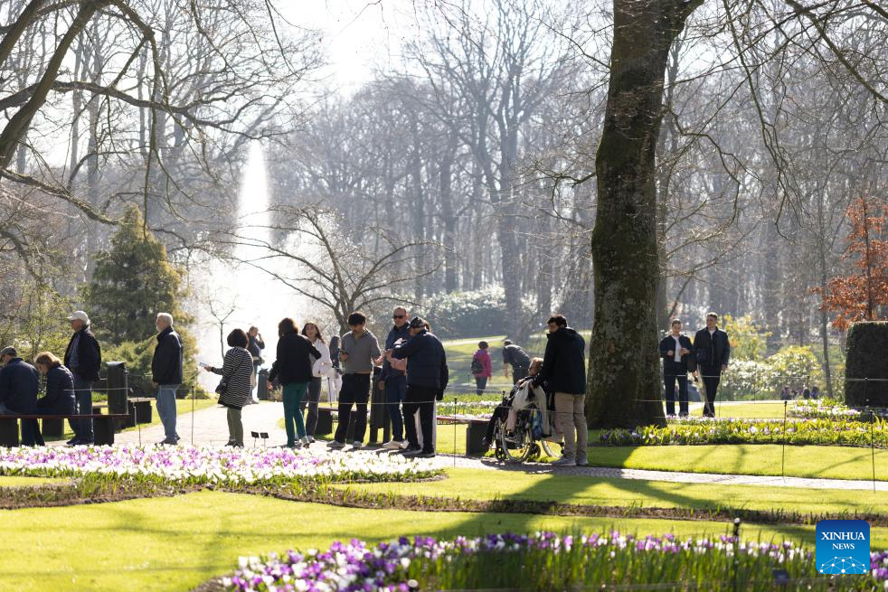 People visit the Keukenhof park in Lisse, the Netherlands, on March 20, 2025. The park is open to the public from March 20 to May 11 this year. (Photo by Sylvia Lederer/Xinhua)