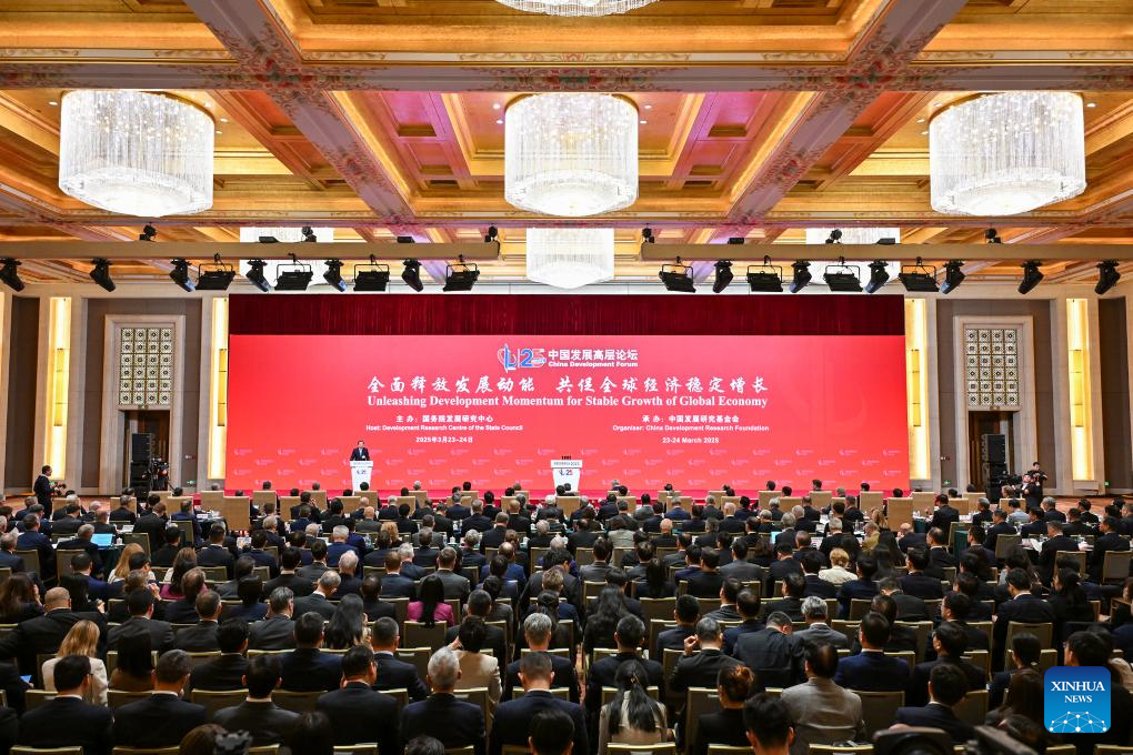 Participants attend the China Development Forum 2025 in Beijing, capital of China, March 23, 2025. The China Development Forum 2025 is scheduled from March 23 to 24. The theme of this year's forum is "Unleashing Development Momentum for Stable Growth of Global Economy." (Xinhua/Li Xin)