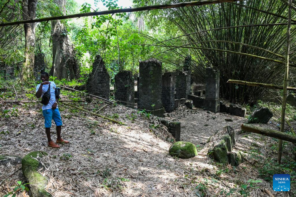 This photo taken on March 18, 2025 shows the remains of a palm oil factory where slaves were subjected to forced labor, at the site of the Port of Slaves in Bimbia, a seaside resort town in Limbe, Cameroon. (Xinhua/Kepseu)