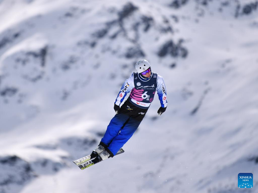Xu Mengtao of China competes during the Freestyle Skiing mixed team aerials final at the 20th Freestyle World Ski Championships in St. Moritz, Switzerland, March 27, 2025. (Xinhua/Lian Yi)