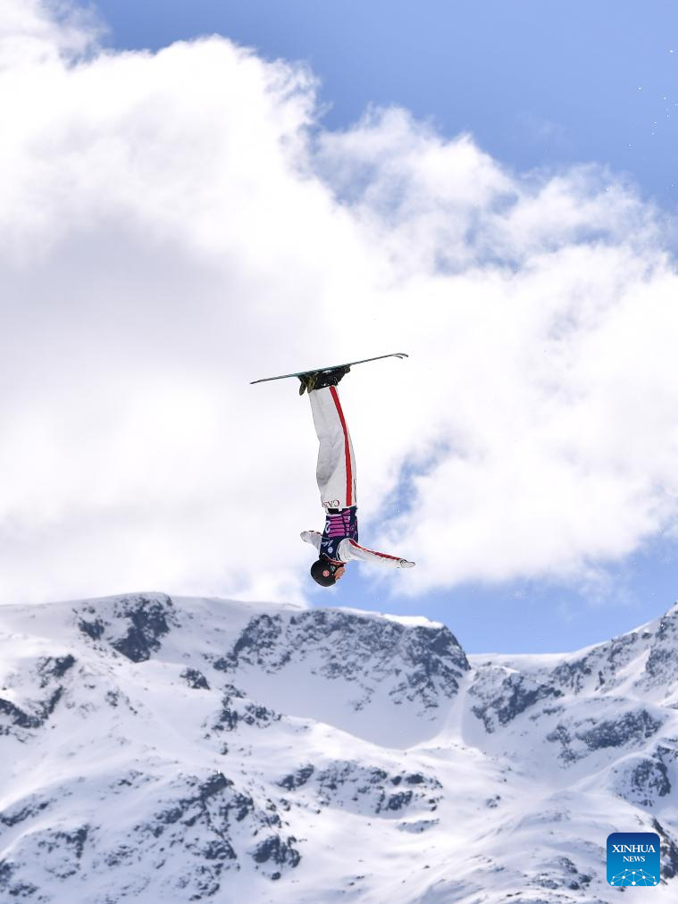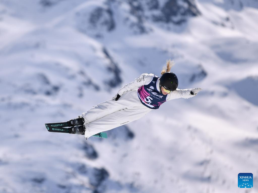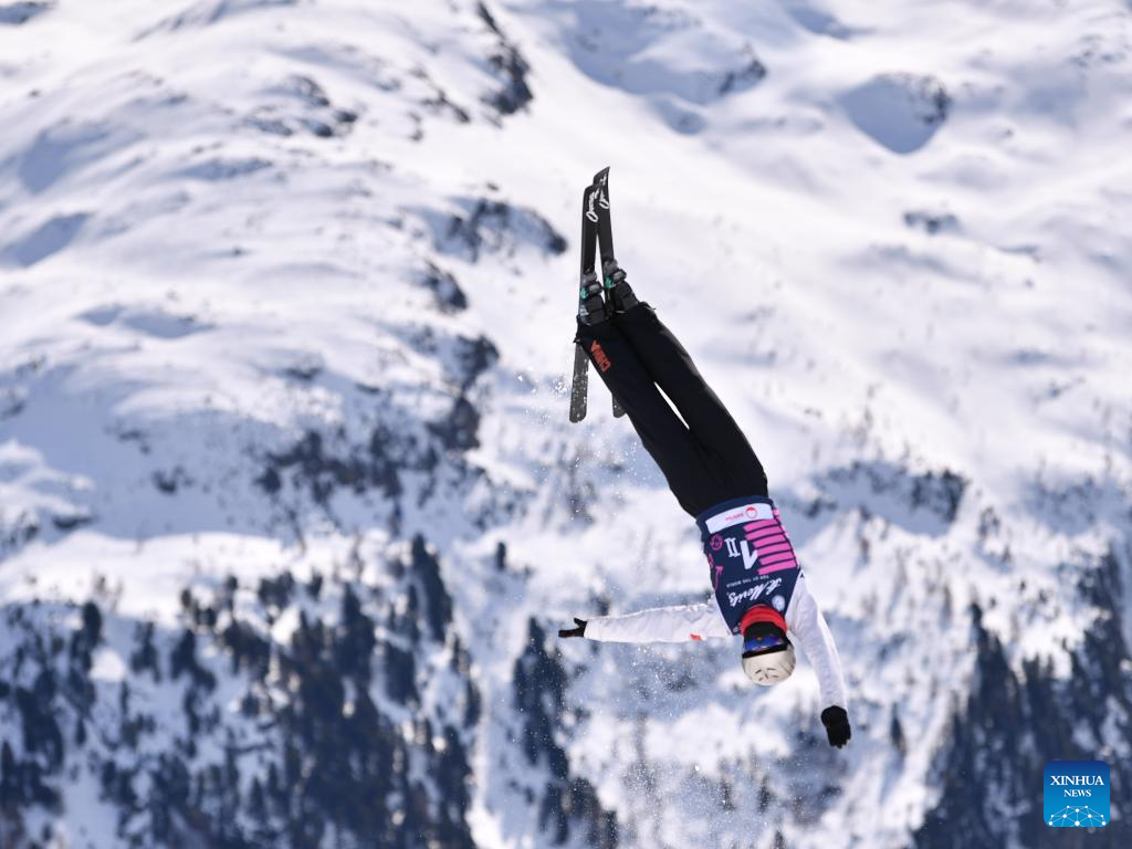 Danielle Scott of Australia competes during the Freestyle Skiing mixed team aerials final at the 20th Freestyle World Ski Championships in St. Moritz, Switzerland, March 27, 2025. (Xinhua/Lian Yi)