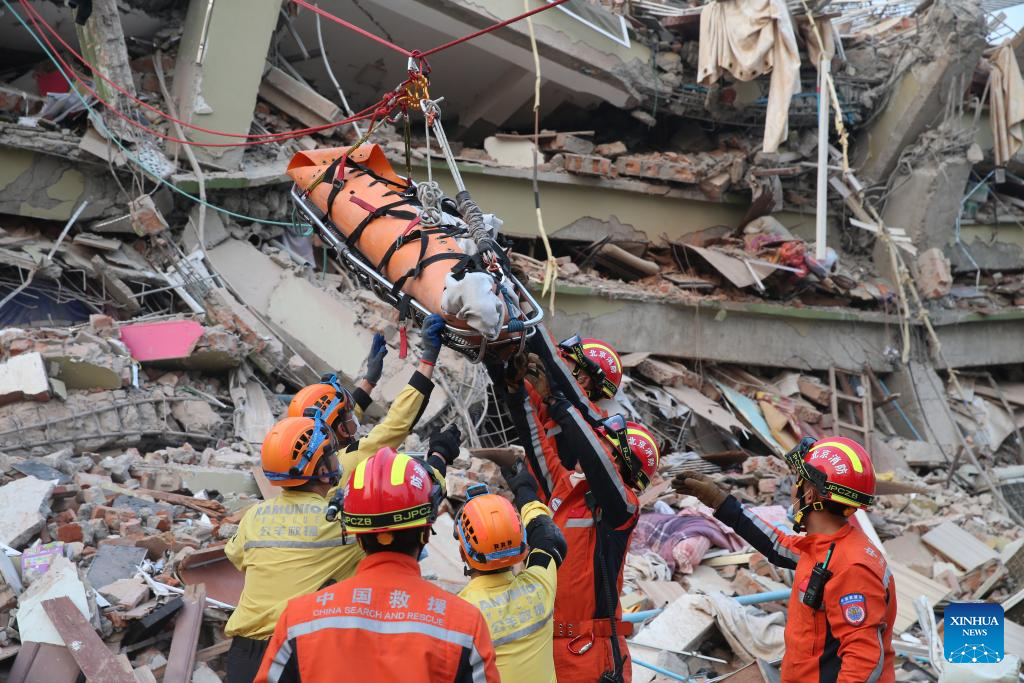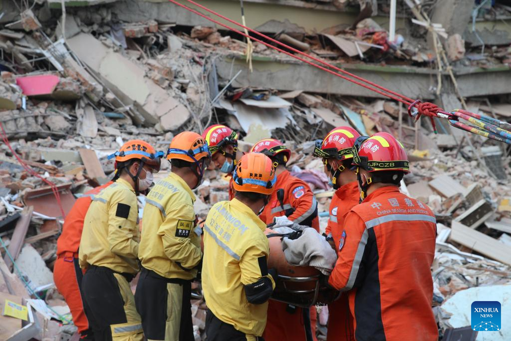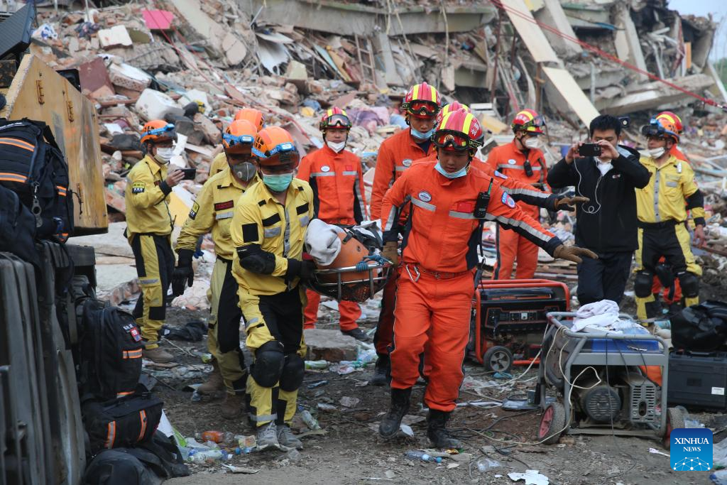 The China Search and Rescue Team and a civilian rescue team of RAMUNION RESCUE joined their efforts in the above-mentioned rescue mission, Yue Xin, a squad leader of the China Search and Rescue Team, told Xinhua at the rescue site in a residential area of the city.