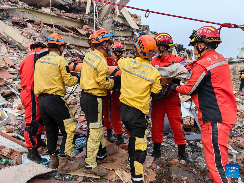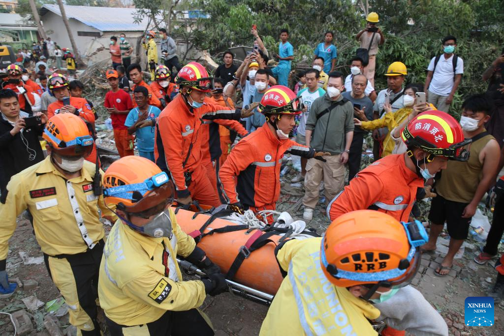 MANDALAY, Myanmar, March 31 (Xinhua) -- Chinese rescuers pulled out a pregnant survivor in quake-hit Myanmar city Mandalay on Monday morning.