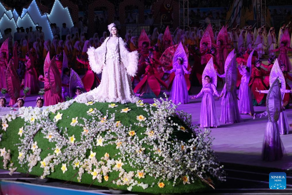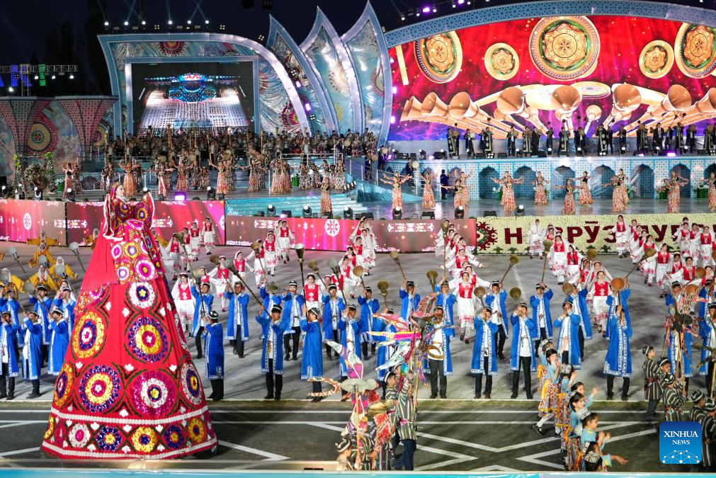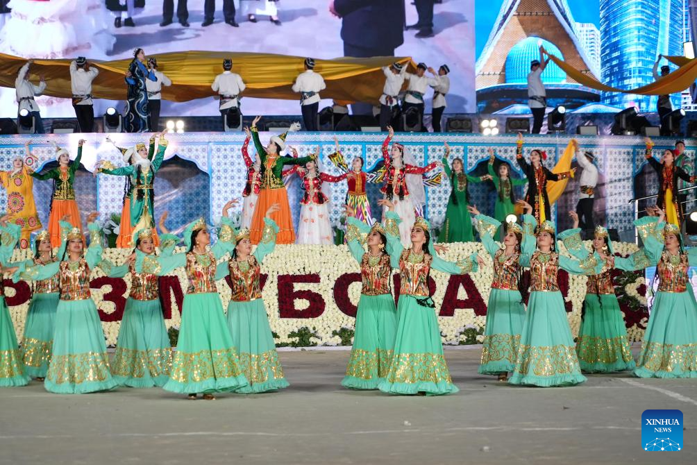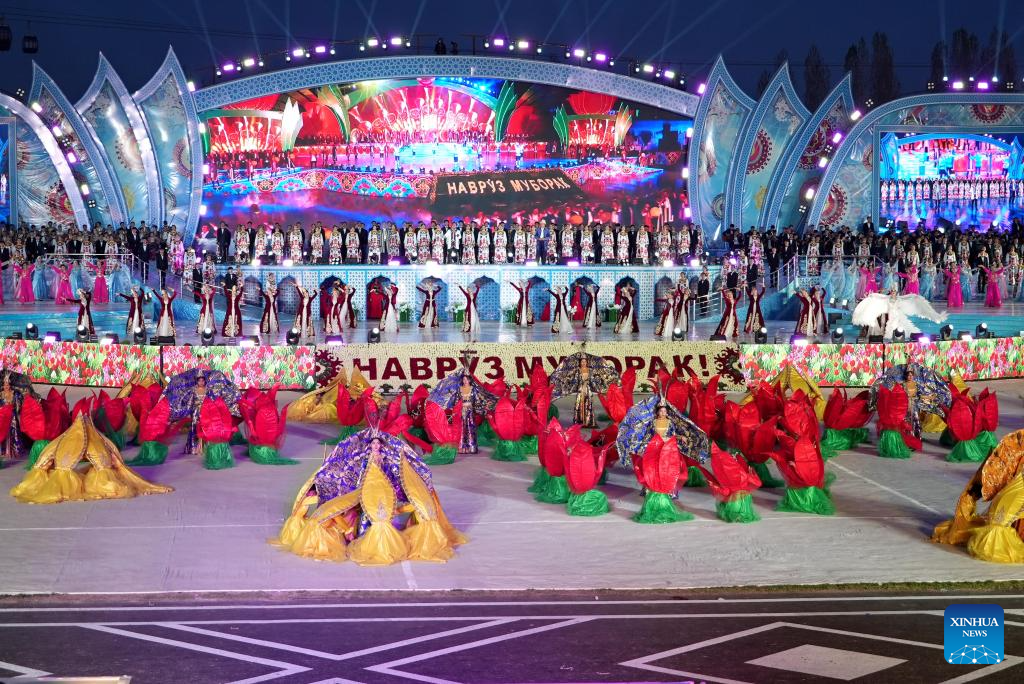 A grand celebration to mark the Nowruz Festival is held in Khujand, Tajikistan, March 31, 2025. Nowruz is one of the most important traditional holidays in Central Asian countries, symbolizing the arrival of spring and the beginning of a new year. (Photo by Zafar Khalilov/Xinhua)