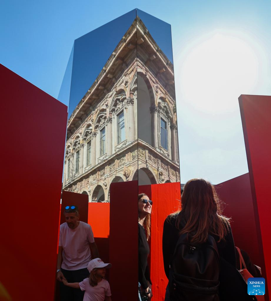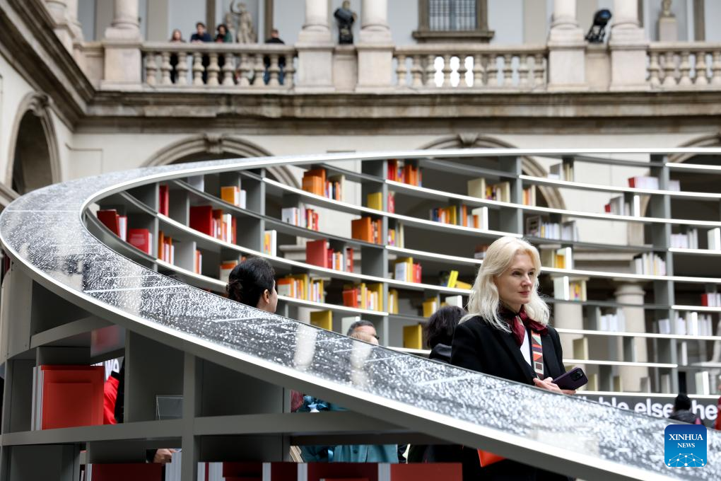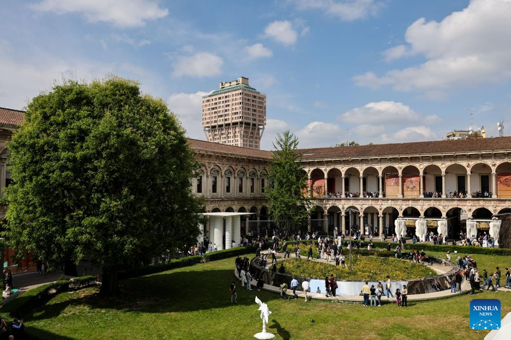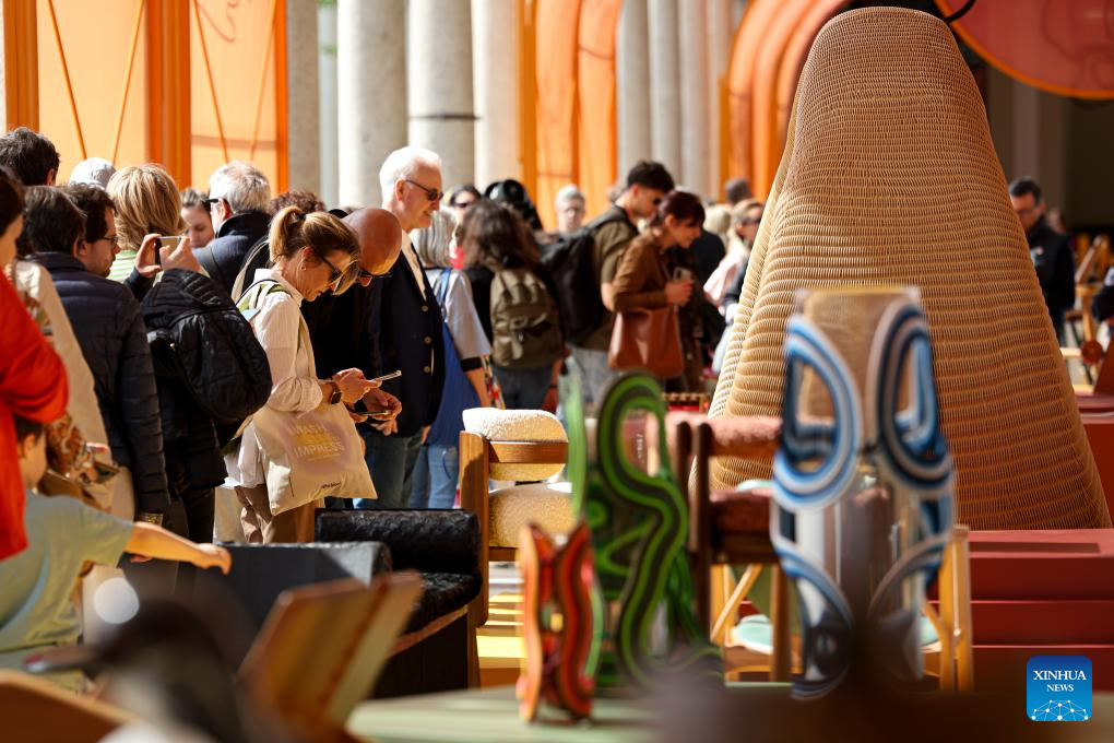 People visit an exhibition area of Milan Design Week at the University of Milan, in Milan, Italy, April 11, 2025.