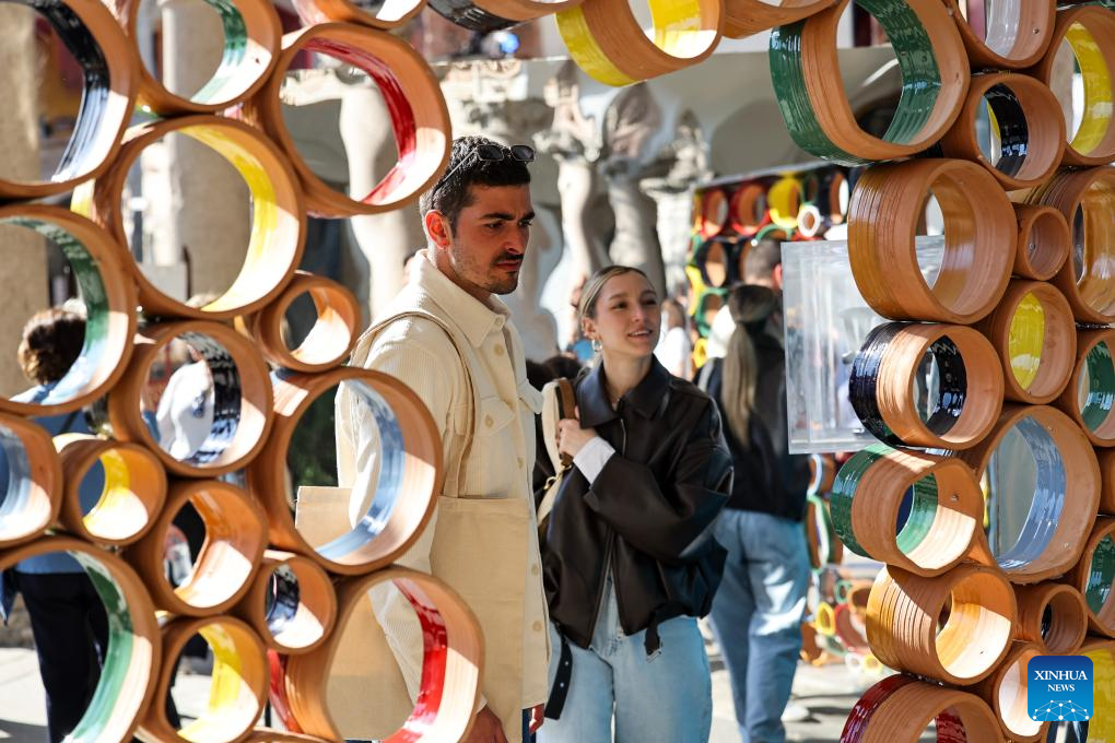 People visit an exhibition area of Milan Design Week at the University of Milan, in Milan, Italy, April 12, 2025.