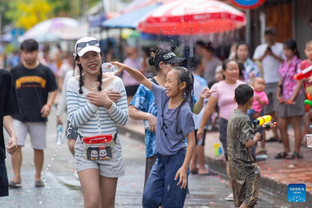 People participate in the celebration of the Songkran Festival in Luang Prabang, Laos, April 16, 2025. Laos celebrates the Songkran Festival, or the Lao New Year from April 14 to 16 this year. A series of celebrations are held to celebrate this traditional festival. (Photo by Kaikeo Saiyasane/Xinhua)