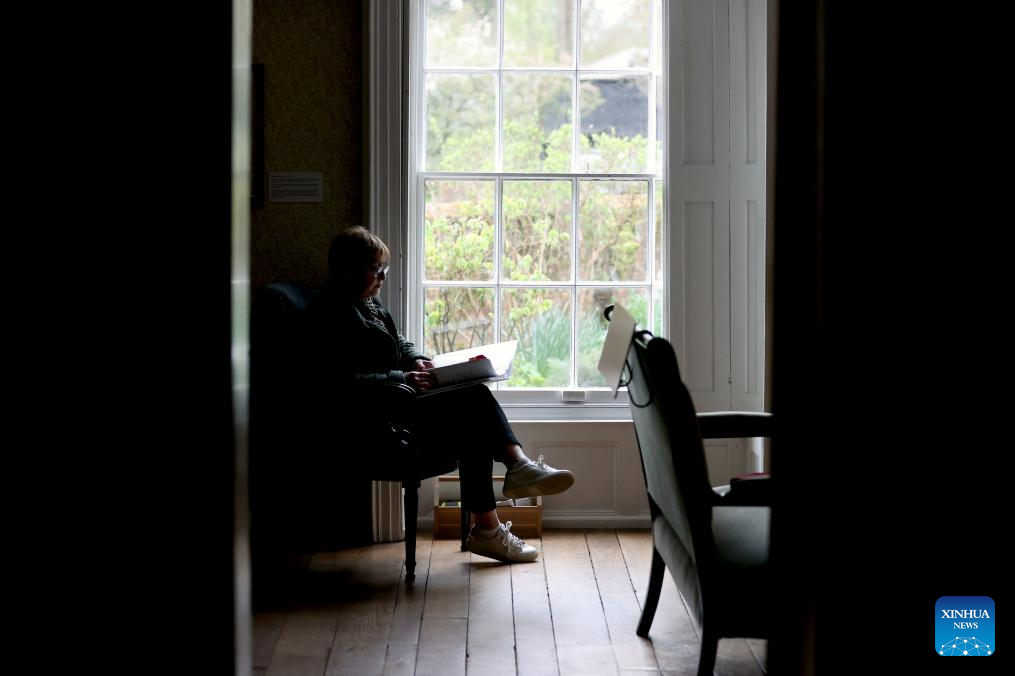 A woman reads at Jane Austen's House in Chawton, Hampshire, Britain, April 18, 2025.