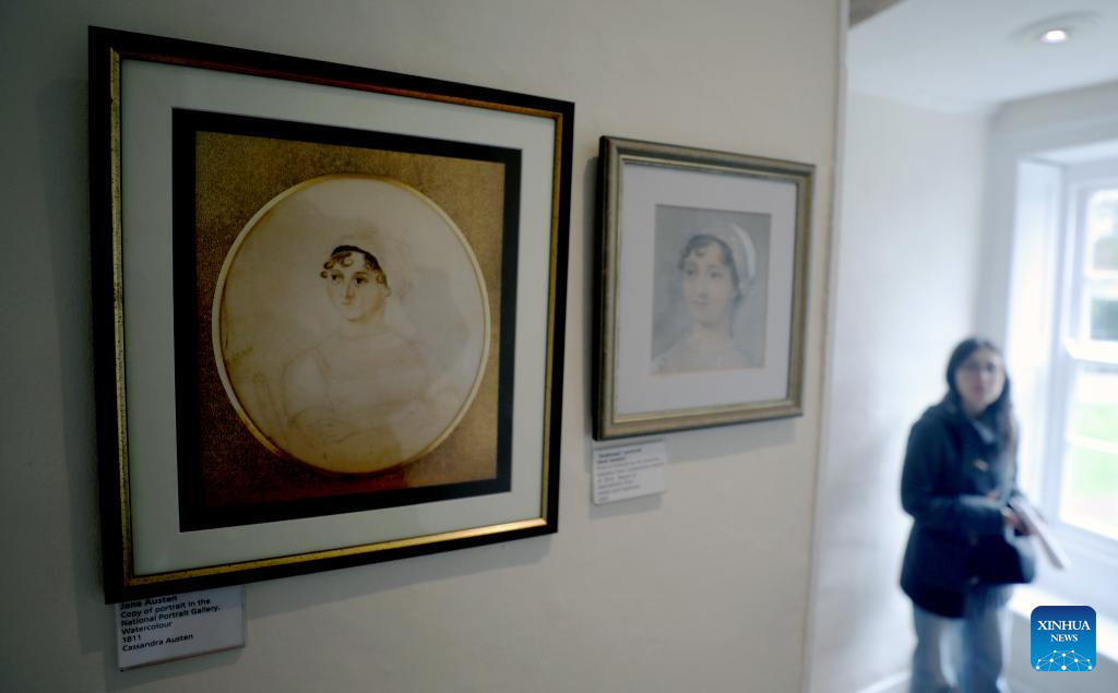 This photo taken on April 18, 2025 shows portraits of Jane Austen at Jane Austen's House in Chawton, Hampshire, Britain.