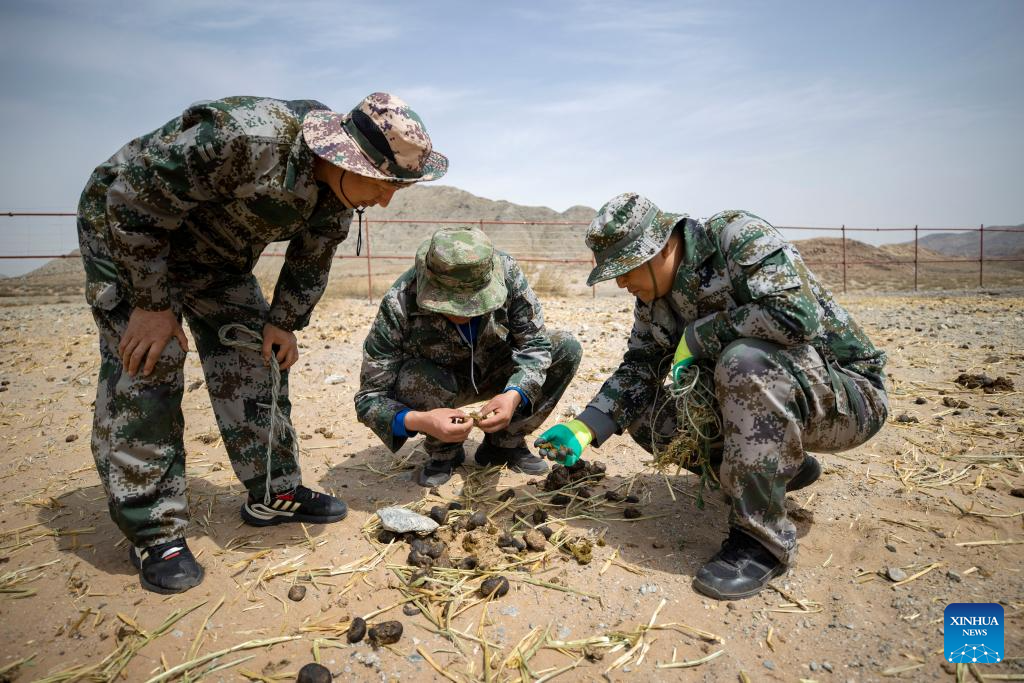 Staff members check the faeces of Przewalski's horses at the Helan Mountain Nature Reserve in northwest China's Ningxia Hui Autonomous Region, April 17, 2025. The Przewalski's horse is listed as endangered by the International Union for Conservation of Nature Red List of Threatened Species and is under first-class national protection.