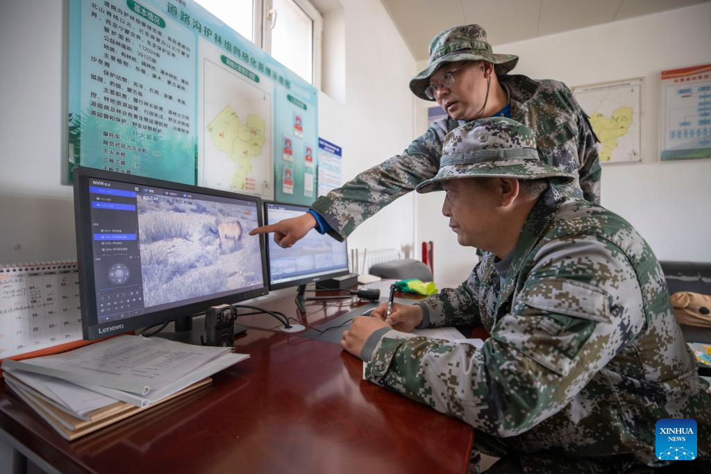 Staff members monitor and record the state of Przewalski's horses at a management station of the Helan Mountain Nature Reserve in northwest China's Ningxia Hui Autonomous Region, April 17, 2025. The Przewalski's horse is listed as endangered by the International Union for Conservation of Nature Red List of Threatened Species and is under first-class national protection.