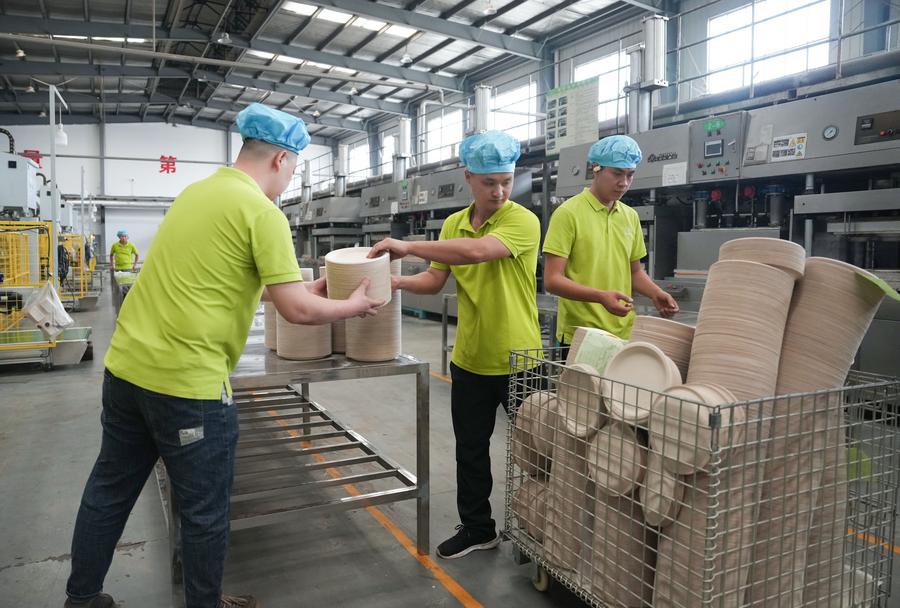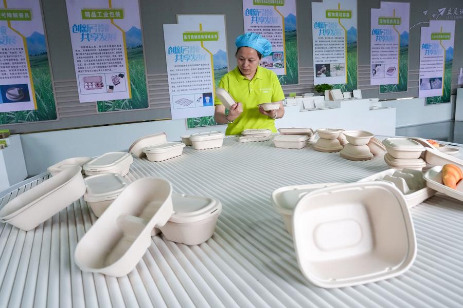 "Our biodegradable tableware is mainly for export. Our products are targeted at markets such as the European Union (EU) and the United States. Currently, orders have been scheduled until this September," said Xiong Xiaoqin, a manager with the company.