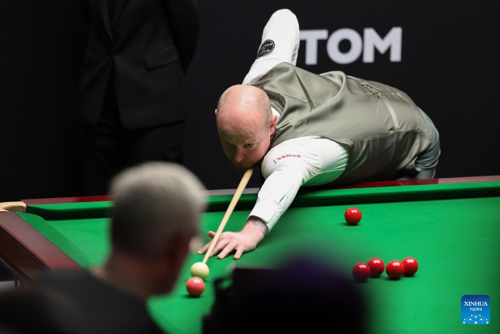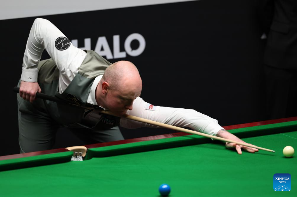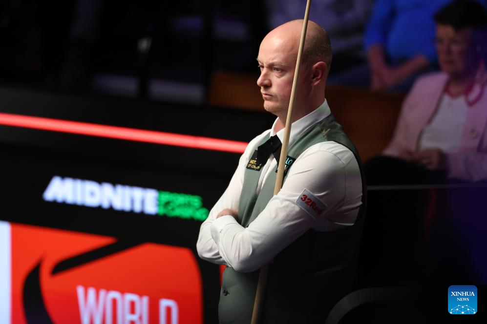 Chris Wakelin of England competes during the round 2 match between Chris Wakelin of England and Mark Allen of Northern Ireland at World Snooker Championship 2025 in Sheffield, Britain, April 25, 2025. (Photo by Zhai Zheng/Xinhua)