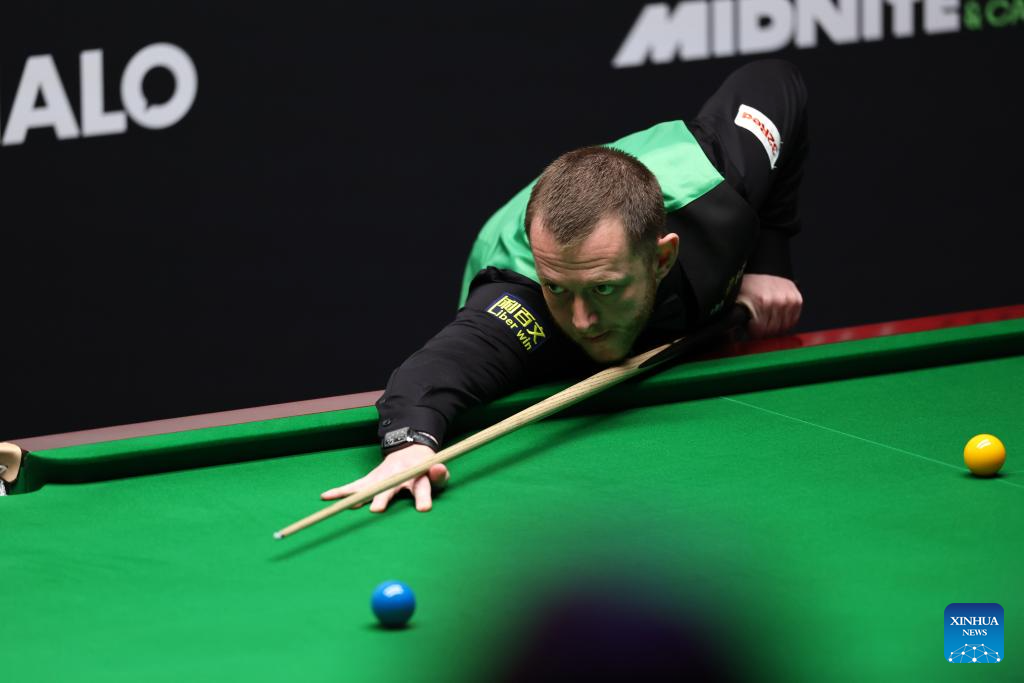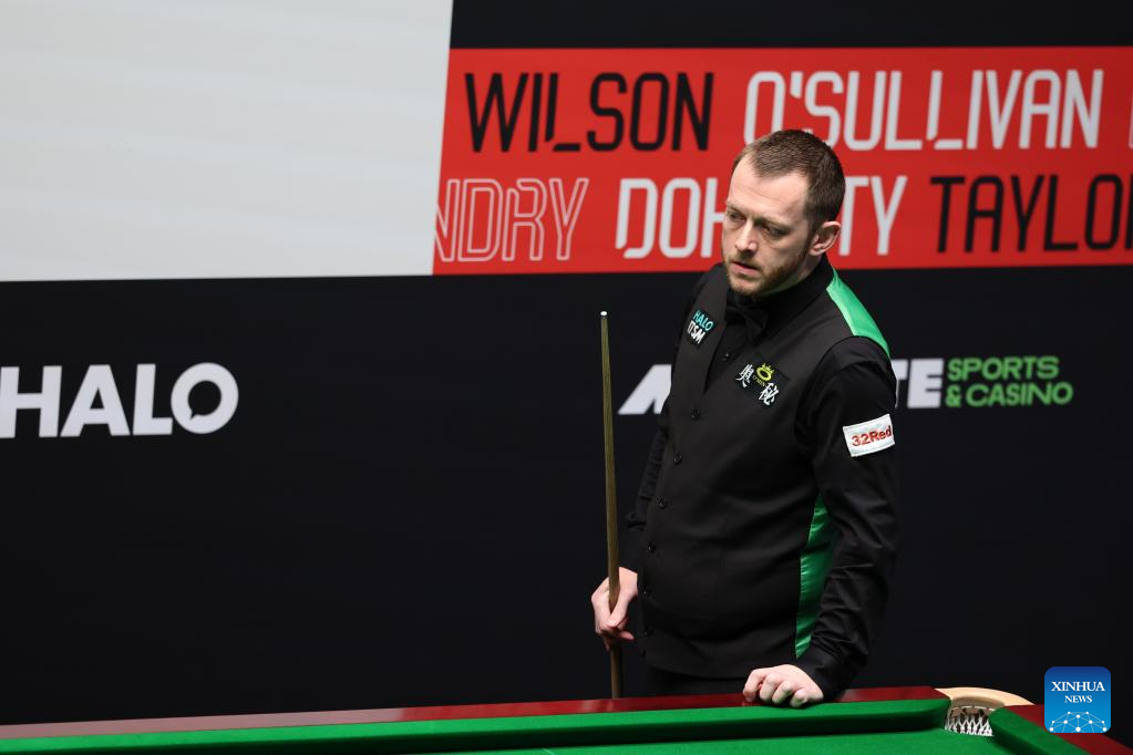 Mark Allen of Northern Ireland competes during the round 2 match between Chris Wakelin of England and Mark Allen of Northern Ireland at World Snooker Championship 2025 in Sheffield, Britain, April 25, 2025. (Photo by Zhai Zheng/Xinhua)