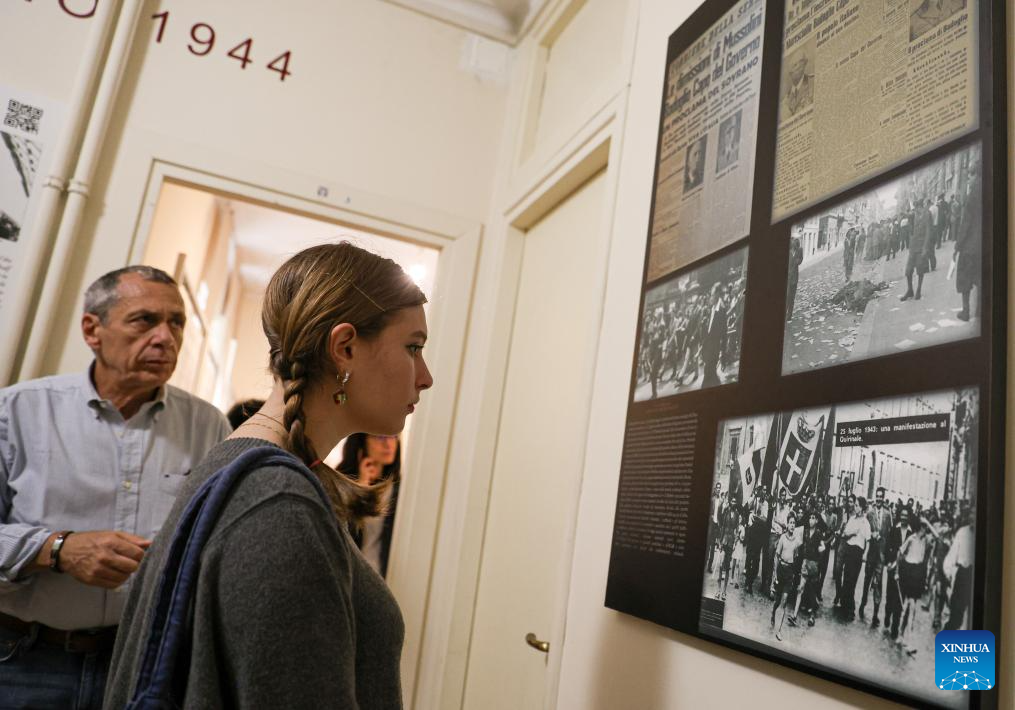People visit the Museum of the Liberation of Rome, in Rome, Italy, on April 25, 2025. Italy marked the 80th anniversary of its liberation from fascism on Friday with a range of activities across the country. (Xinhua/Li Jing)
