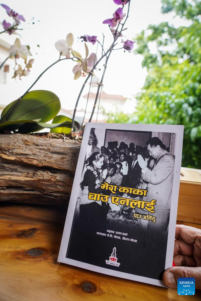 A Nepali version of "My Uncle Zhou Enlai" is pictured in Kathmandu, Nepal, April 30, 2025. The Nepali version of "My Uncle Zhou Enlai" was launched in the Nepali capital on Wednesday. (Photo by Hari Maharjan/Xinhua)