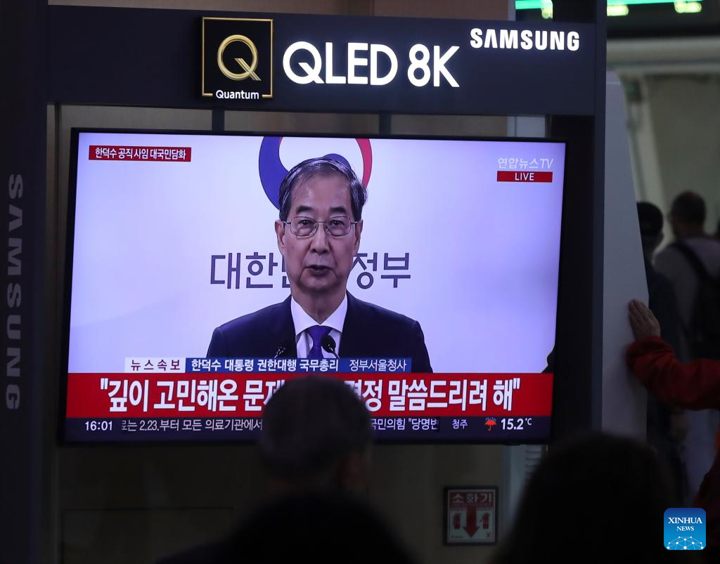 SEOUL, May 1 (Xinhua) -- South Korea's acting president and Prime Minister Han Duck-soo announced his resignation on Thursday in a televised address to the nation, amid wide expectations for his presidential run.