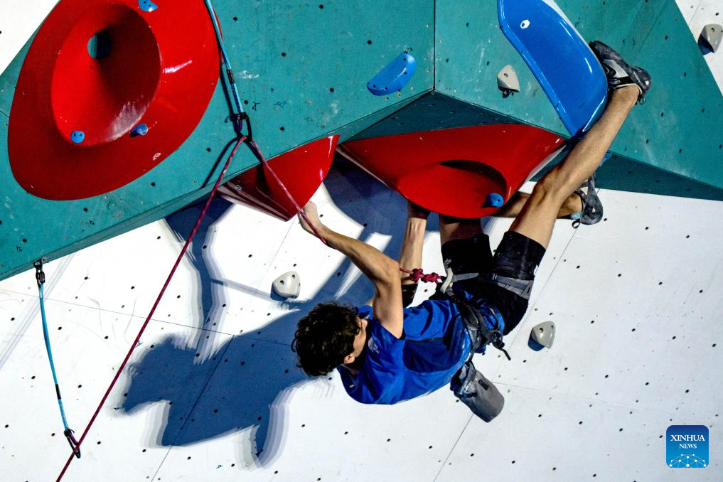 Alberto Gines Lopez of Spain competes during the men's lead final at the IFSC Climbing World Cup Bali 2025 in Bali, Indonesia, May 4, 2025. (Photo by Dicky Bisinglasi/Xinhua)