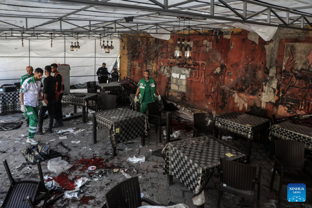 Eyewitnesses told Xinhua that an Israeli drone fired at least one missile at a restaurant and a market in the al-Rimal neighborhood in central Gaza City.