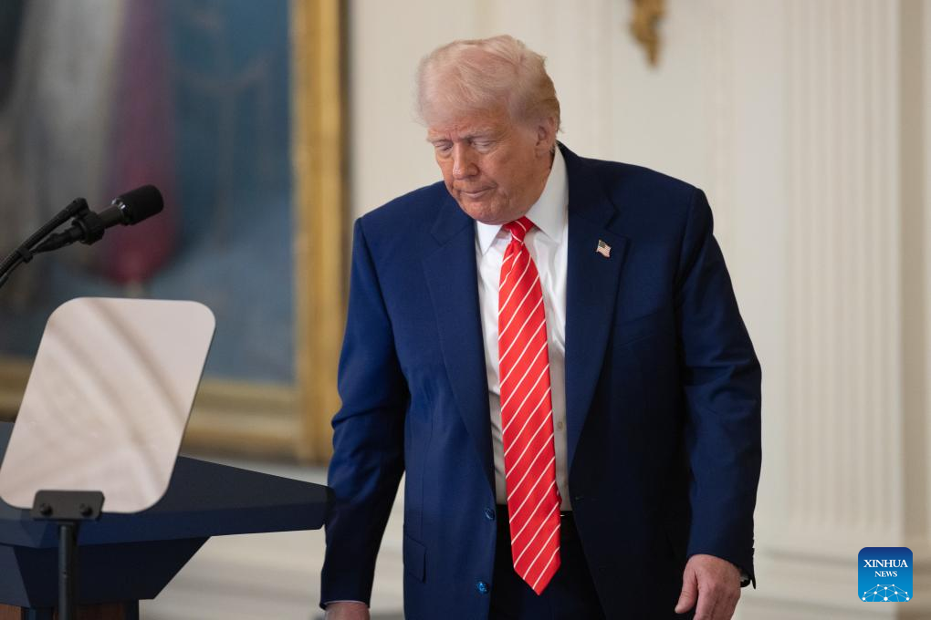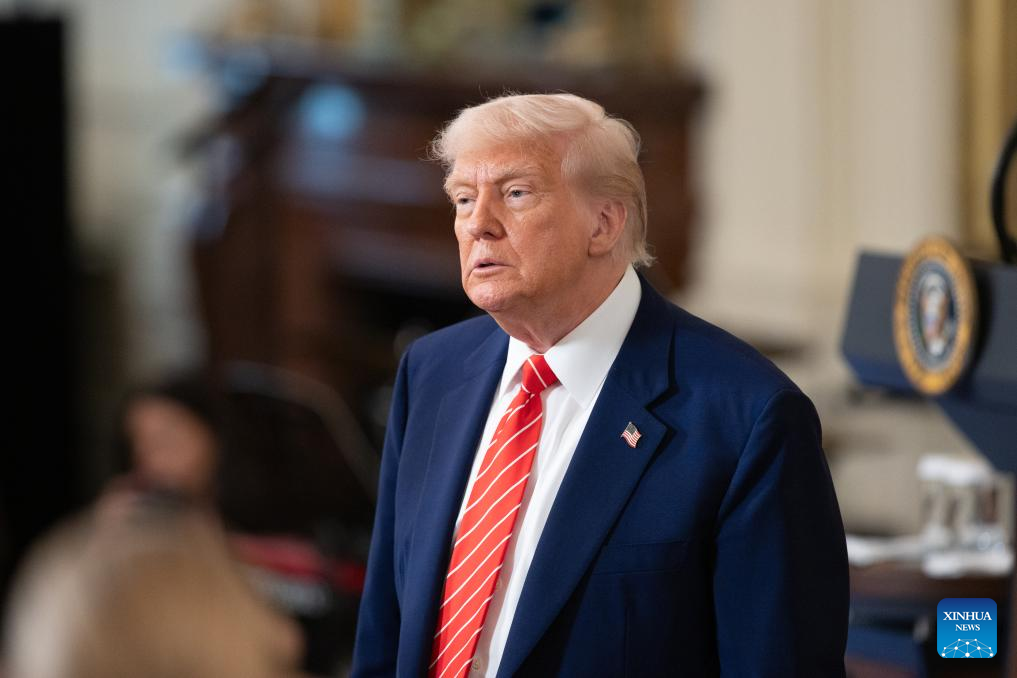 U.S. President Donald Trump attends a celebration of military mothers at the White House in Washington, D.C., the United States, on May 8, 2025. Trump on Thursday announced at the White House that the United States and Britain had reached a new trade agreement, which includes partially rolling back tariffs in certain sectors and further expanding market access for each other's products. (Xinhua/Hu Yousong)