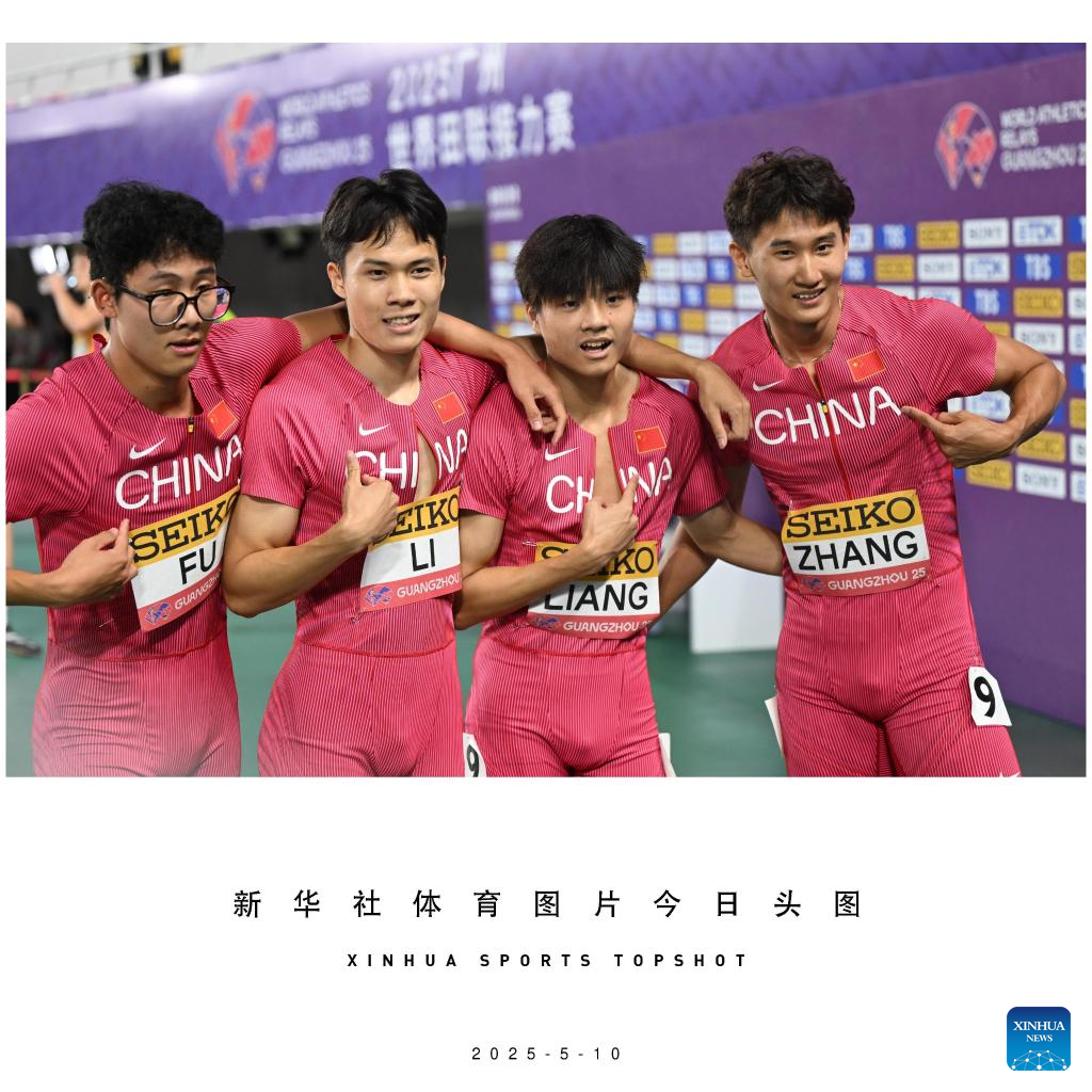 Team China celebrate after the men's 4x400m relay heat at the World Athletics Relays Guangzhou 2025 in Guangzhou, south China's Guangdong Province, May 10, 2025. (Xinhua/Deng Hua)