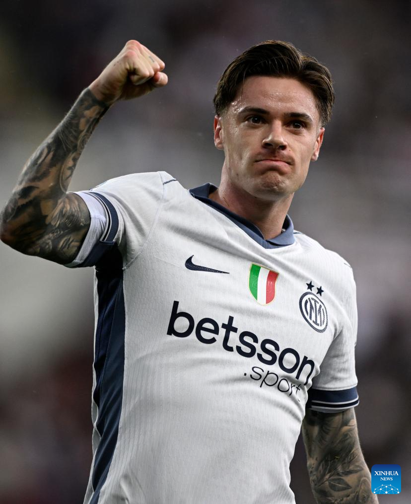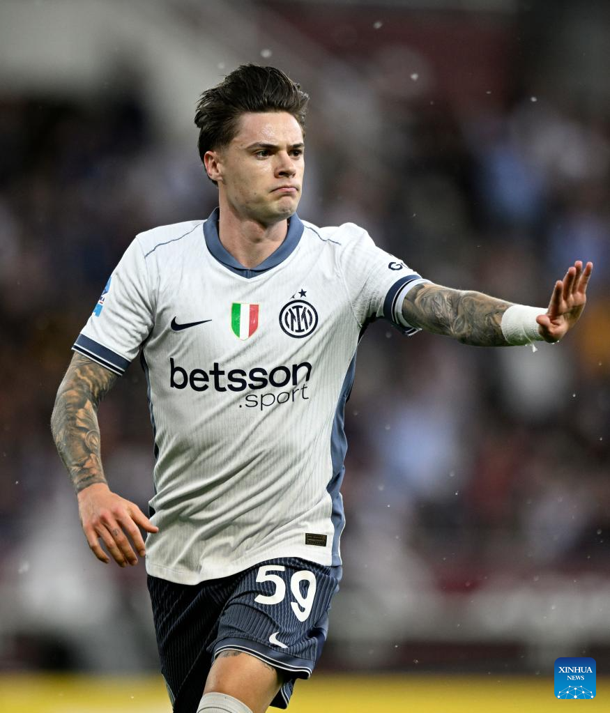 Inter Milan's Nicola Zalewski celebrates his goal during a Serie A soccer match between Torino and Inter Milan in Turin, Italy, May 11, 2025. (Xinhua)