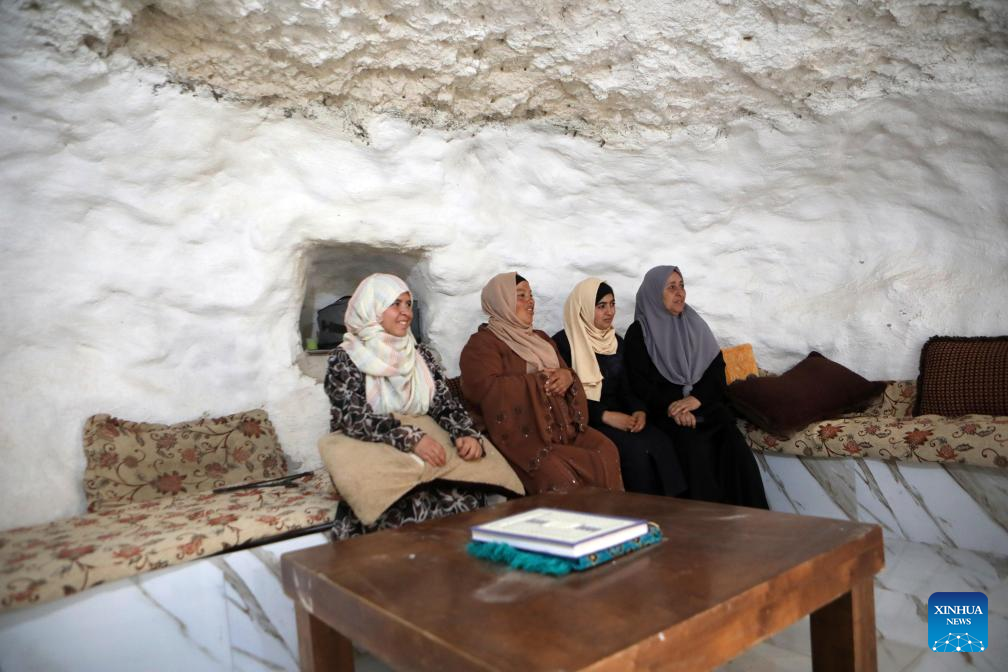 Palestinians are pictured inside a cave after the Israeli forces demolished their structures in the village of Khallet al-Dabaa in Masafer Yatta, southern West Bank city of Hebron, on May 12, 2025. (Photo by Mamoun Wazwaz/Xinhua)
