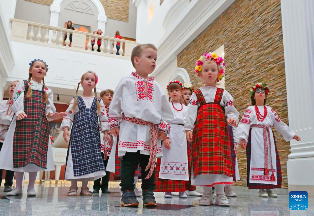 Young participants wearing traditional costumes sing songs at the National Art Museum of Belarus in Minsk, Belarus, on May 17, 2025. The National Art Museum of Belarus hosted a variety of activities to celebrate the International Museum Day which falls on May 18th. (Photo by Henadz Zhinkov/Xinhua)