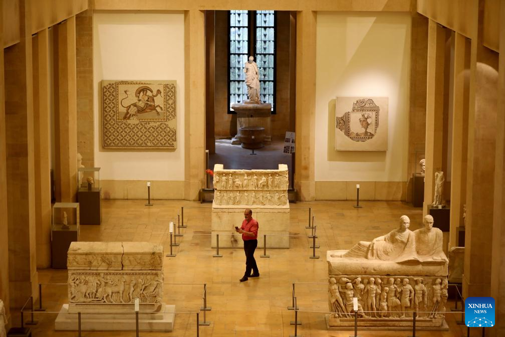 A visitor views exhibits at Lebanon's National Museum in Beirut, Lebanon, on May 18, 2025. On the occasion of International Museum Day, Lebanon's National Museum in Beirut opened its door to the public for free on Sunday, inviting visitors to discover the country's ancient civilizations and archaeological treasures. (Xinhua/Bilal Jawich)