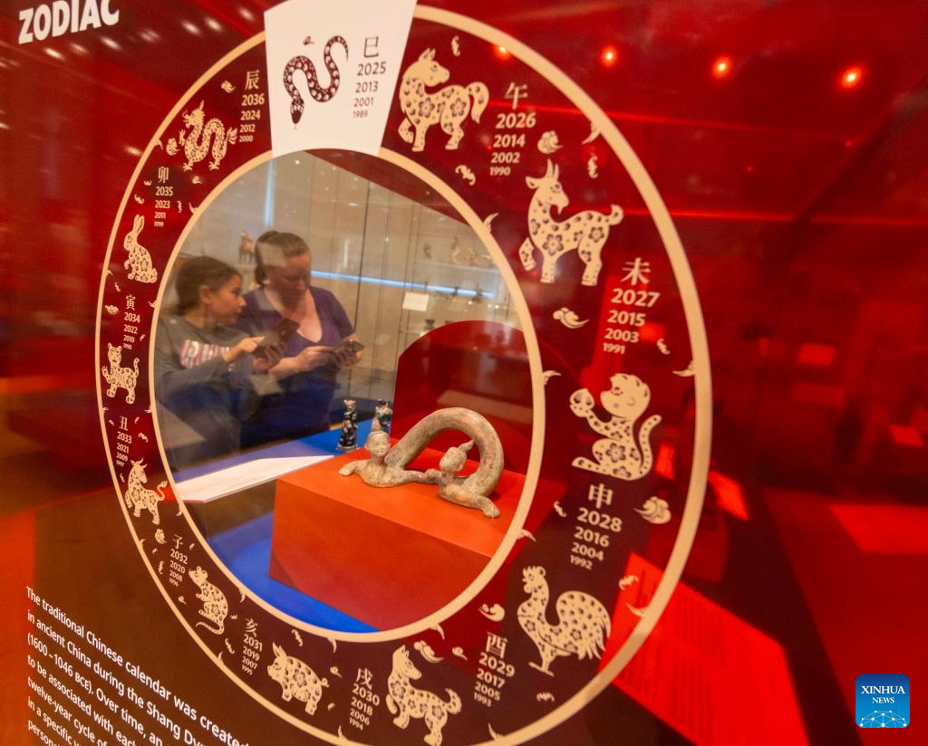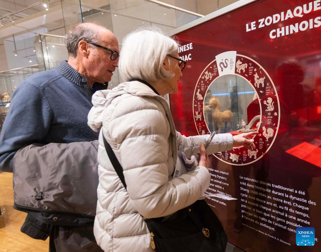 Visitors capture images of Chinese zodiac cases at the Royal Ontario Museum in Toronto, Canada, May 18, 2025.