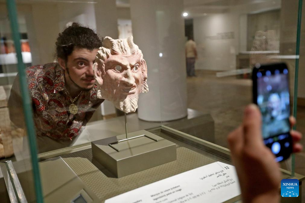 A visitor views an exhibit at Lebanon's National Museum in Beirut, Lebanon, on May 18, 2025. On the occasion of International Museum Day, Lebanon's National Museum in Beirut opened its door to the public for free on Sunday, inviting visitors to discover the country's ancient civilizations and archaeological treasures. (Xinhua/Bilal Jawich)