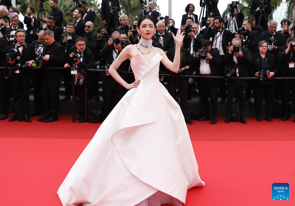 Chinese actress Zhou Ye arrives for the screening of the film "Nouvelle Vague" (New Wave) at the 78th edition of the Cannes Film Festival in Cannes, southern France, on May 17, 2025. (Xinhua/Gao Jing)