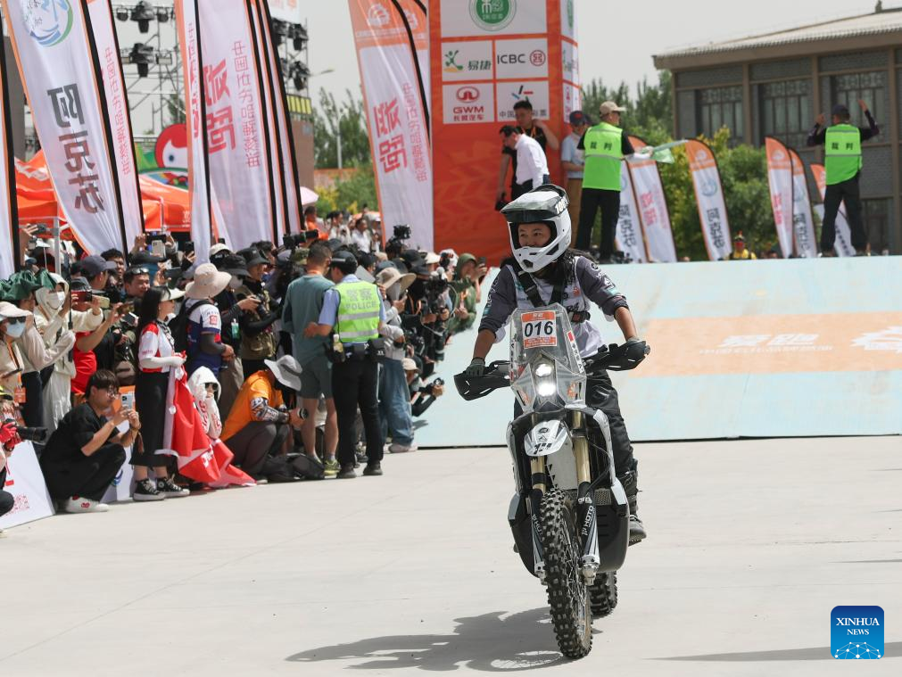 Rider Li Yifei of China sets off during the starting ceremony of the 2025 Taklimakan Rally in Aksu, northwest China's Xinjiang Uygur Autonomous Region, May 20, 2025.