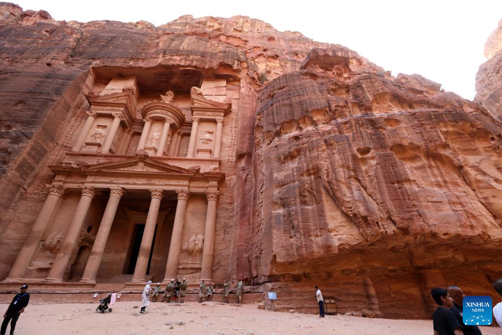 This photo taken on May 20, 2025 shows a view of the Treasury Building at the archaeological site of Petra, Jordan. Jordan's Petra is a unique archaeological Nabataean city carved into rock, recognized as a UNESCO World Heritage Site since 1985. (Photo by Mohammad Abu Ghosh/Xinhua)