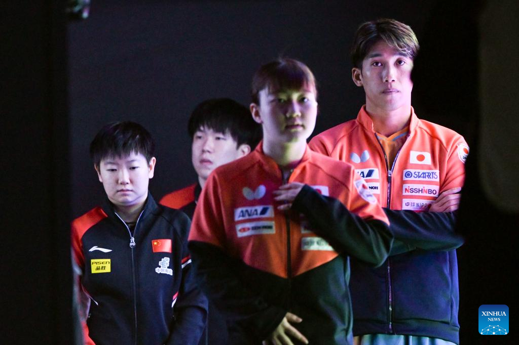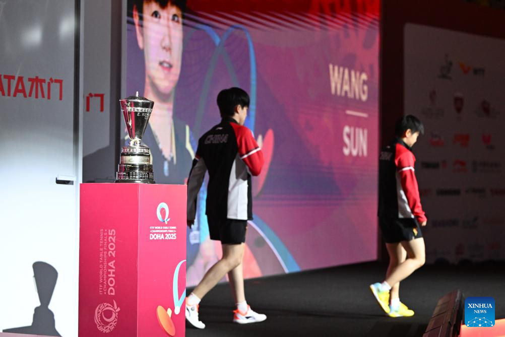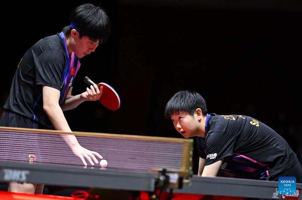 DOHA, May 24 (Xinhua) -- China's Olympic champions Wang Chuqin and Sun Yingsha defeated a Japanese team 3-1 to win their third straight mixed doubles title at the World Table Tennis Championships on Saturday.