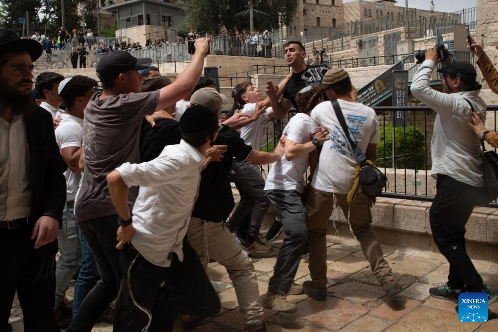 JERUSALEM, May 26 (Xinhua) -- Crowds of young far-right Israeli activists attacked Palestinians in East Jerusalem's Old City on Monday as they marched through the narrow streets to mark Israel's occupation of the eastern part of the city.
