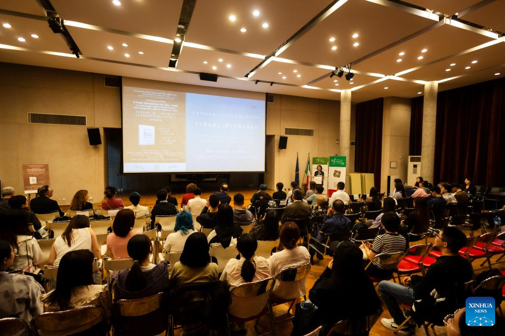 This photo taken on May 8, 2025 shows a scene during the launch ceremony for the new book "The bridge of China-Italy friendship: China Today as written by the 1955 Italian cultural delegation" at the Italian Cultural Institute in Beijing, capital of China. (Xinhua)