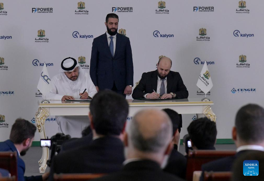 DAMASCUS, May 29 (Xinhua) -- Syria signed a series of memoranda of understanding with international energy companies on Thursday to develop five major power projects, as part of efforts to rebuild its war-damaged infrastructure and accelerate the country's post-war recovery, state news agency SANA reported.