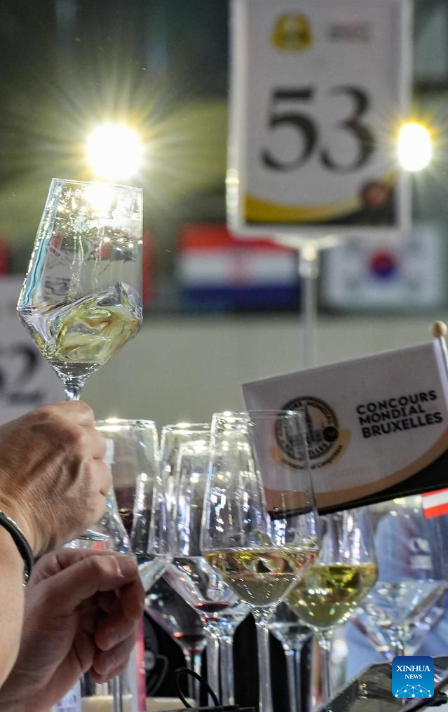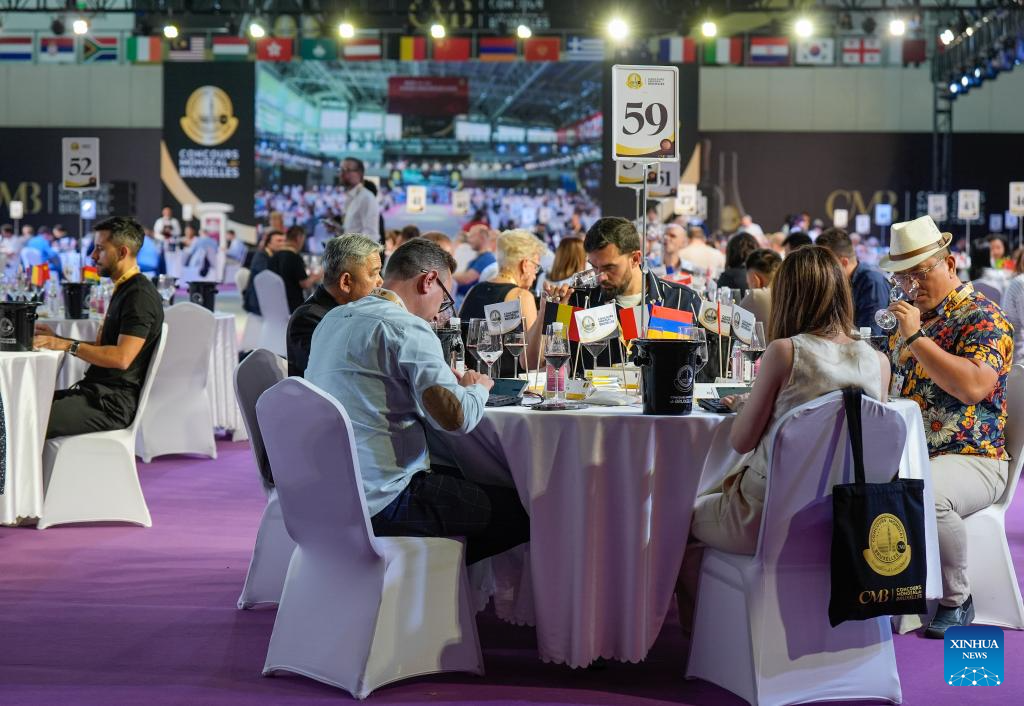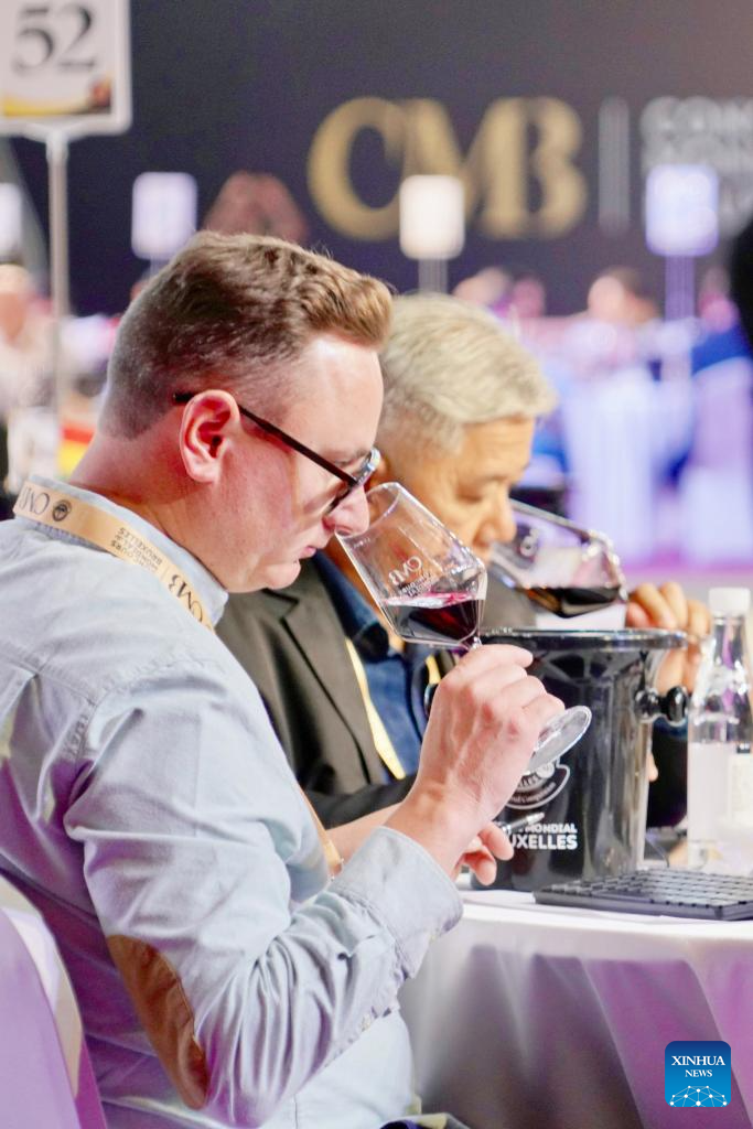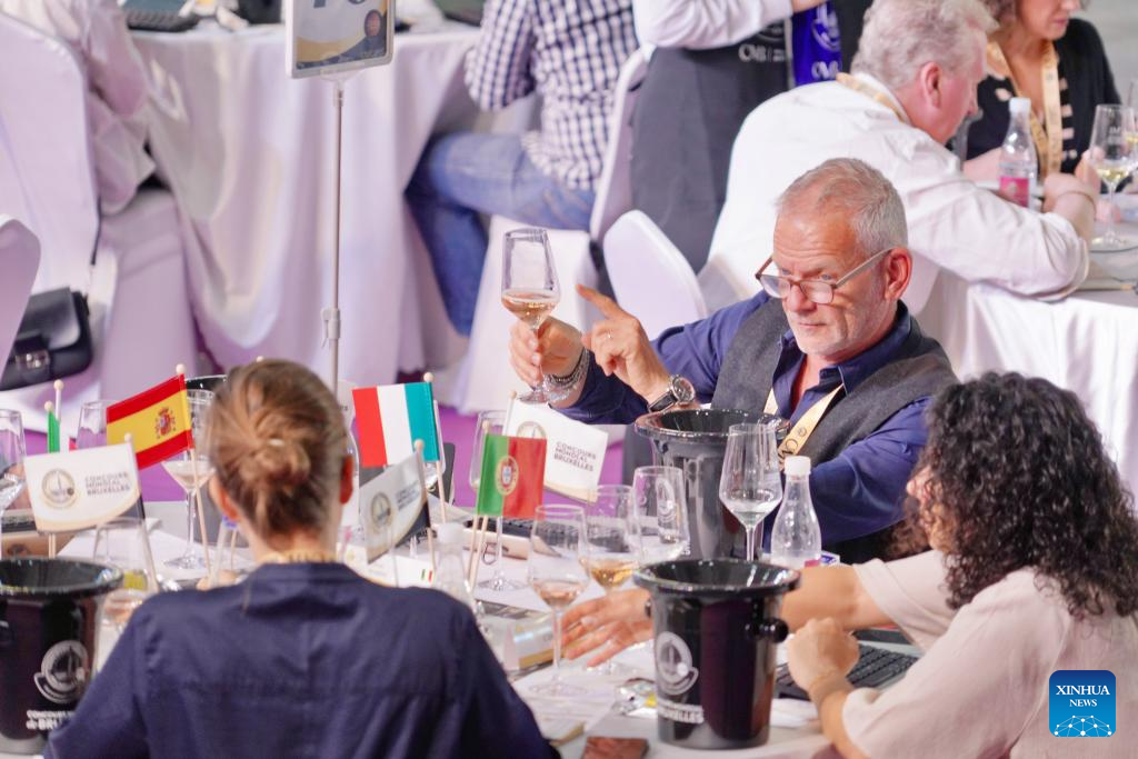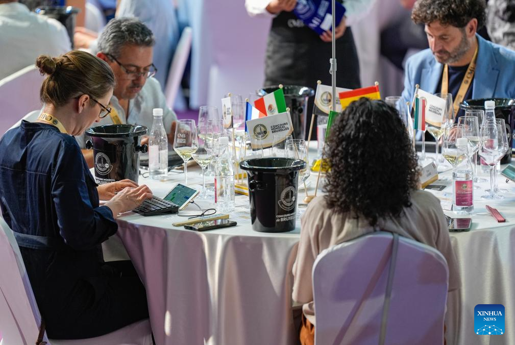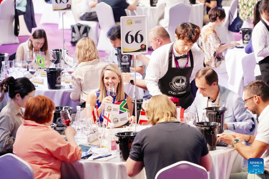 A sommelier samples a glass of wine during the 32nd Concours Mondial de Bruxelles (CMB) in Yinchuan, northwest China's Ningxia Hui Autonomous Region, June 10, 2025. Making its China debut in 2018 in Beijing, the CMB has this year brought together nearly 400 international judges and over 7,000 wine samples, including a record number of entries from China, according to CMB Chairman Baudouin Havaux. (Xinhua/Yang Zhisen)