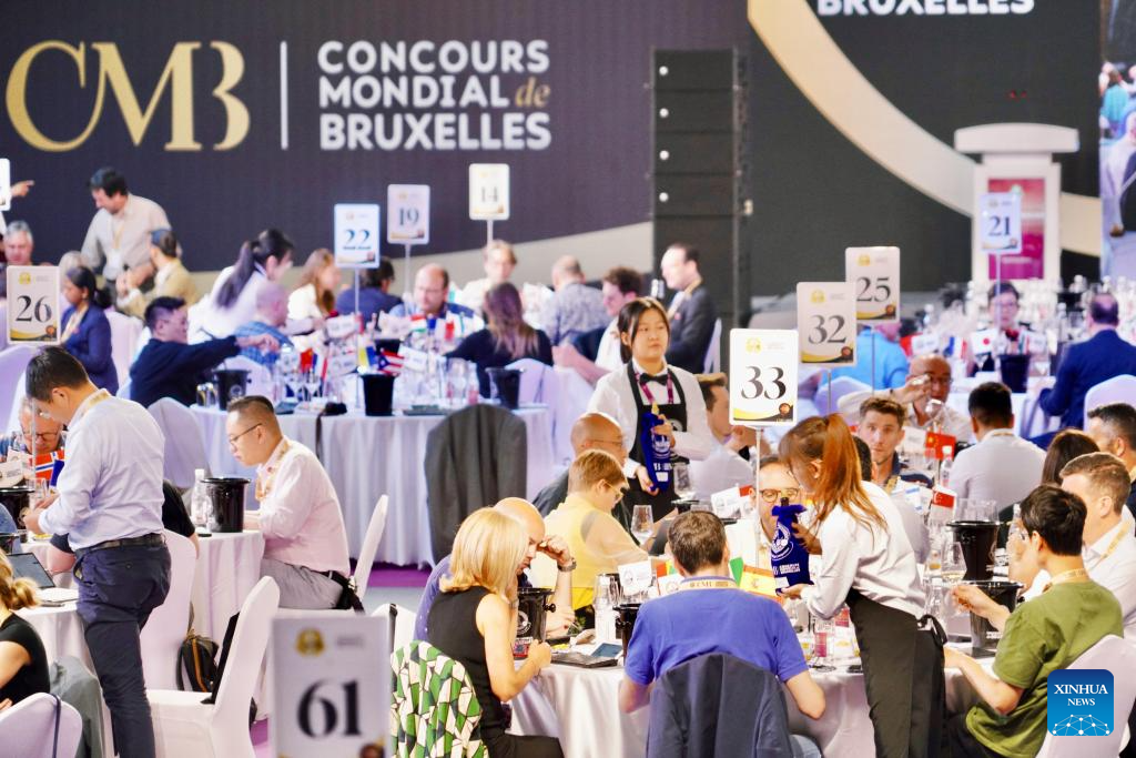 This photo taken on June 10, 2025 shows the main venue of the 32nd Concours Mondial de Bruxelles (CMB) in Yinchuan, northwest China's Ningxia Hui Autonomous Region. Making its China debut in 2018 in Beijing, the CMB has this year brought together nearly 400 international judges and over 7,000 wine samples, including a record number of entries from China, according to CMB Chairman Baudouin Havaux. (Xinhua/Du Juanjuan)