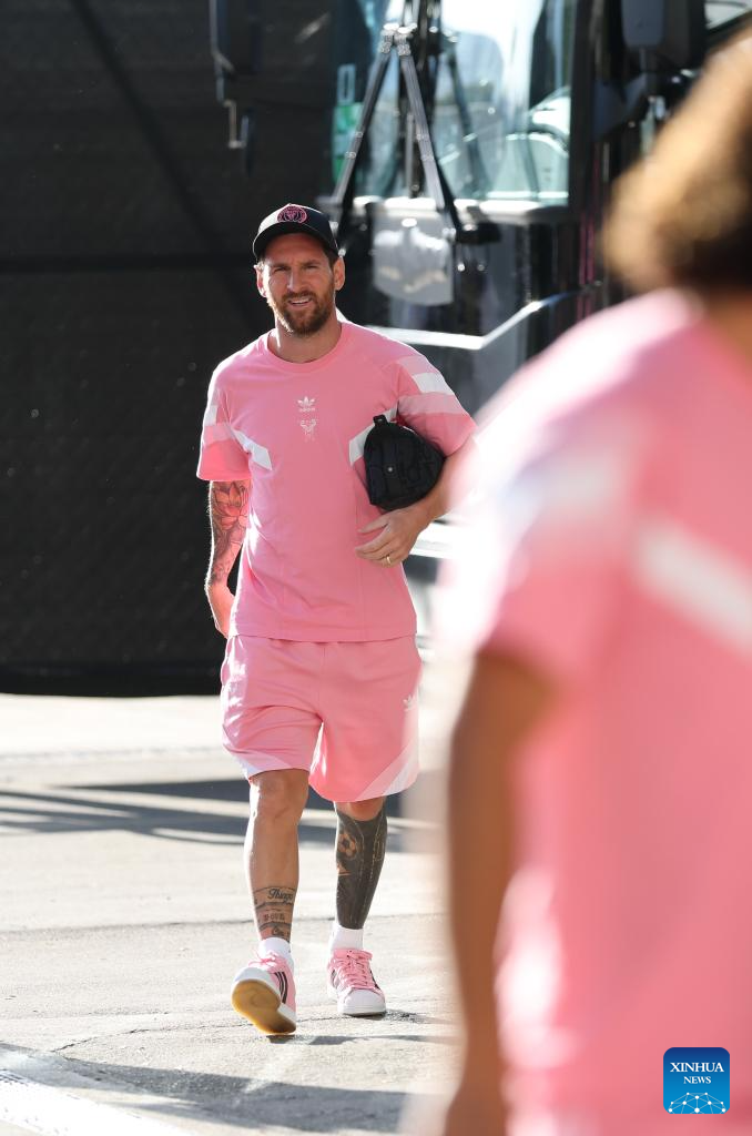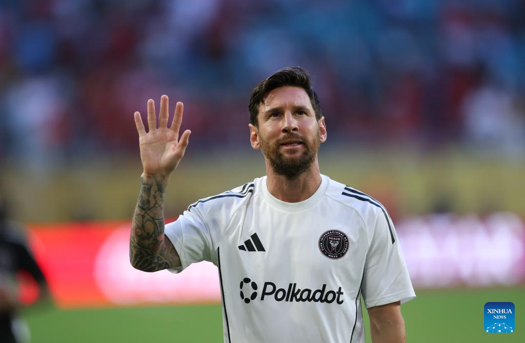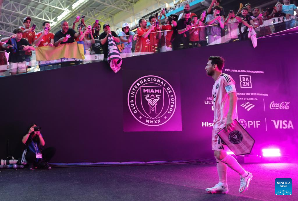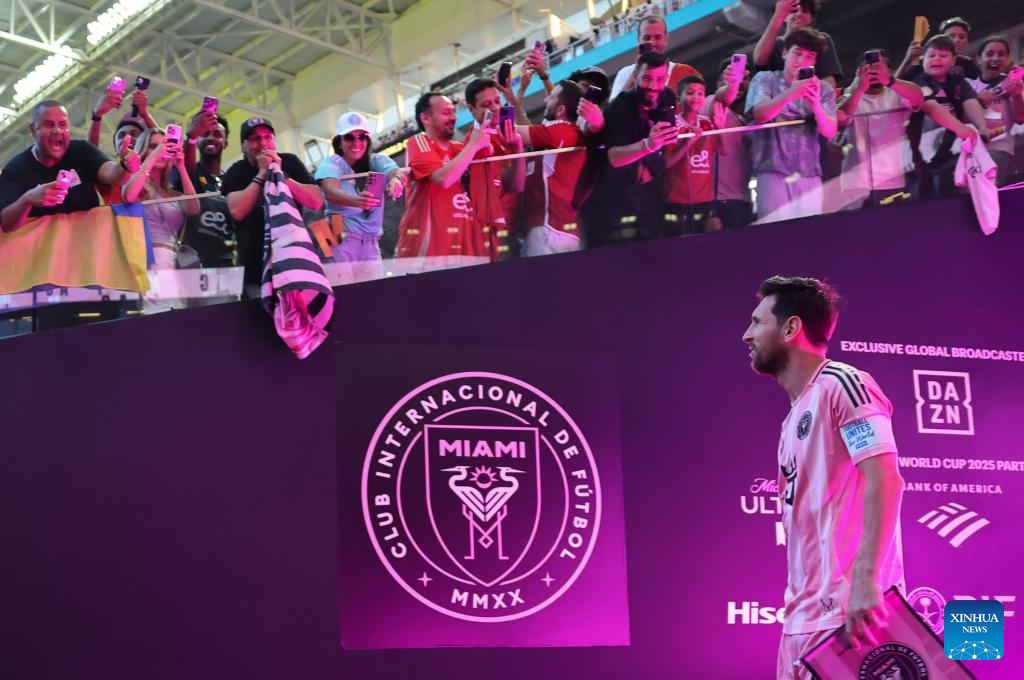 Lionel Messi of Inter Miami CF walks into the pitch before the opening match between Inter Miami CF of the United States and Al Ahly of Egypt at the FIFA Club World Cup 2025 in Miami, the United States, on June 14, 2025. (Xinhua/Cao Can)