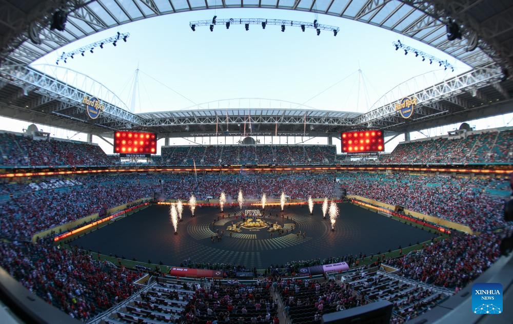 Actors perform during the opening ceremony before the opening match between Inter Miami CF of the United States and Al Ahly of Egypt at the FIFA Club World Cup 2025 in Miami, the United States, on June 14, 2025. (Xinhua/Xu Zijian)