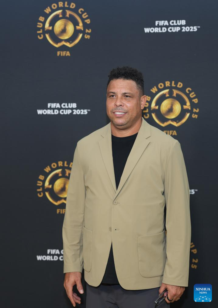 Brazilian football legend Ronaldo Nazario arrives for the opening match between Inter Miami CF of the United States and Al Ahly of Egypt at the FIFA Club World Cup 2025 in Miami, the United States, on June 14, 2025. (Xinhua/Huang Zongzhi)