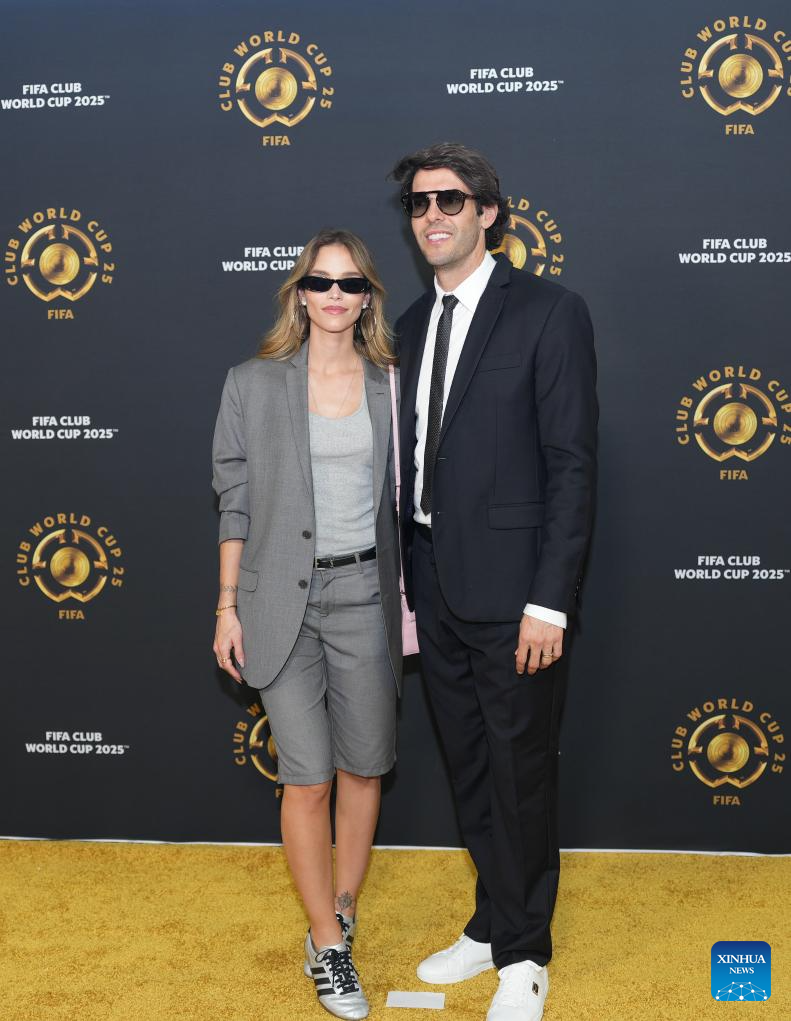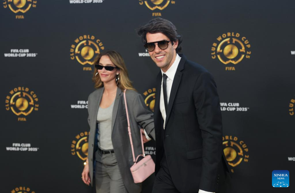 Brazilian football legend Kaka (R) arrives for the opening match between Inter Miami CF of the United States and Al Ahly of Egypt at the FIFA Club World Cup 2025 in Miami, the United States, on June 14, 2025. (Xinhua/Huang Zongzhi)