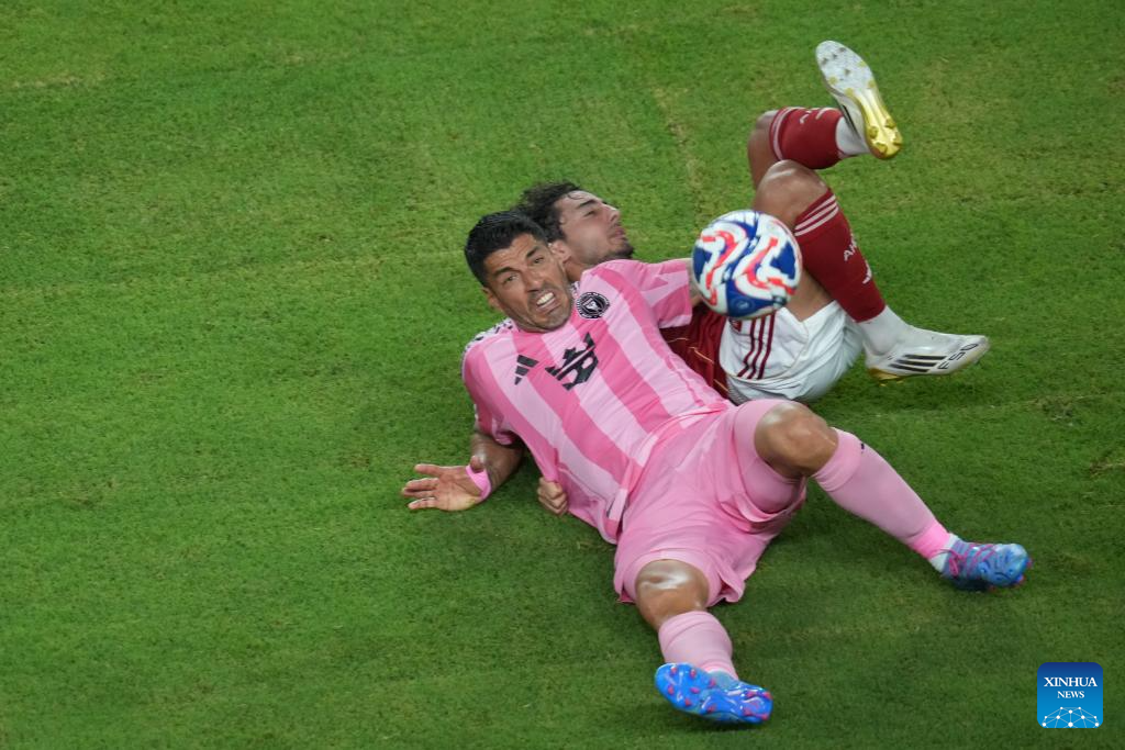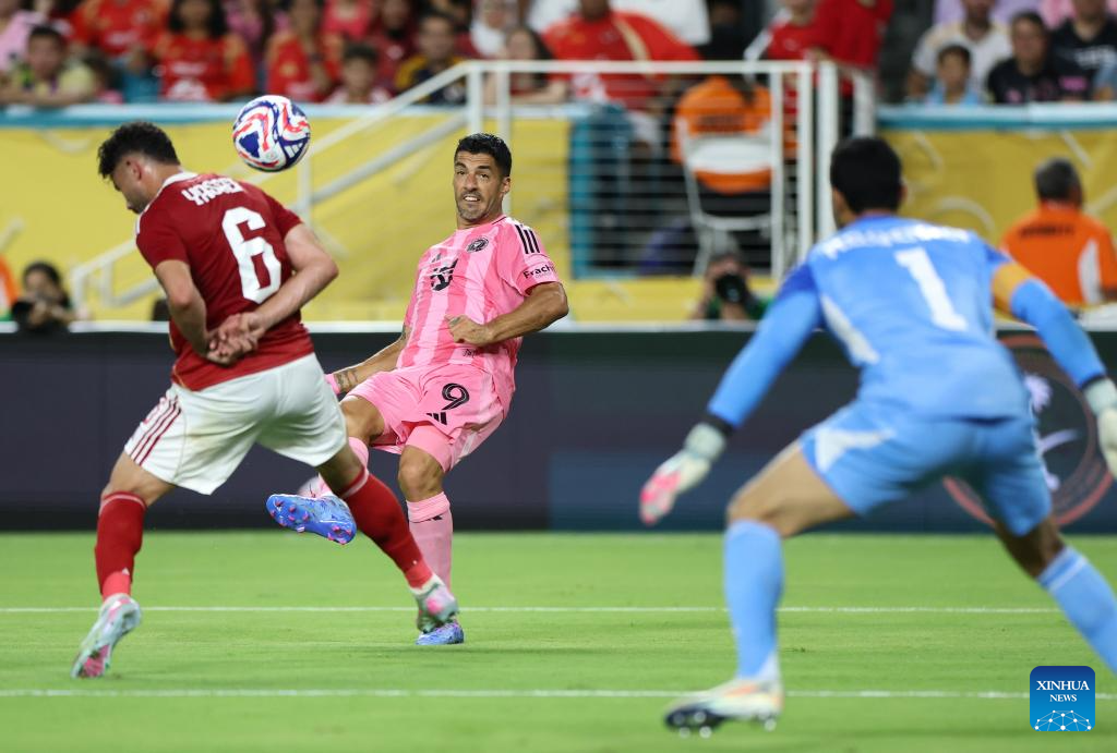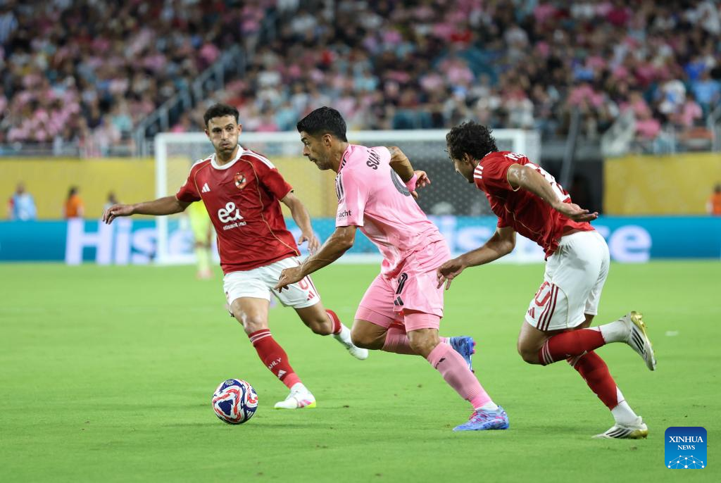 Luis Suarez (C) of Inter Miami CF competes during the opening match between Inter Miami CF of the United States and Al Ahly of Egypt at the FIFA Club World Cup 2025 in Miami, the United States, on June 14, 2025. (Xinhua/Li Ming)