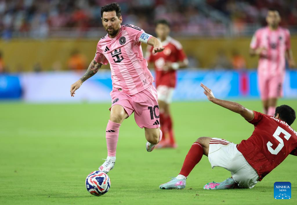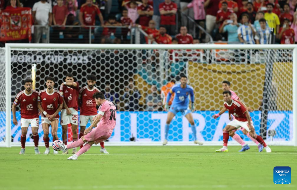Lionel Messi (C) of Inter Miami CF competes during the opening match between Inter Miami CF of the United States and Al Ahly of Egypt at the FIFA Club World Cup 2025 in Miami, the United States, on June 14, 2025. (Xinhua/Li Ming)