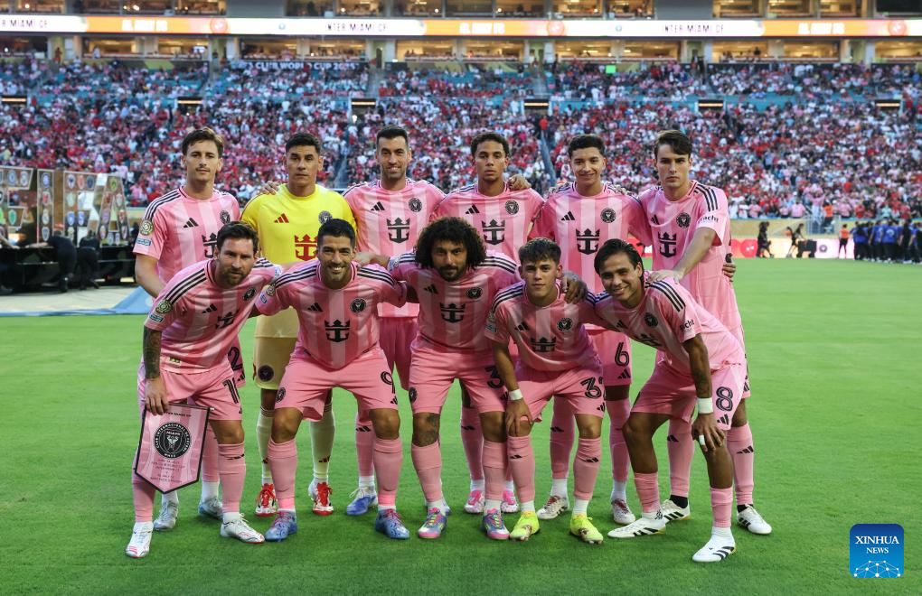 Players of Inter Miami CF pose before the opening match between Inter Miami CF of the United States and Al Ahly of Egypt at the FIFA Club World Cup 2025 in Miami, the United States, on June 14, 2025. (Xinhua/Li Ming)